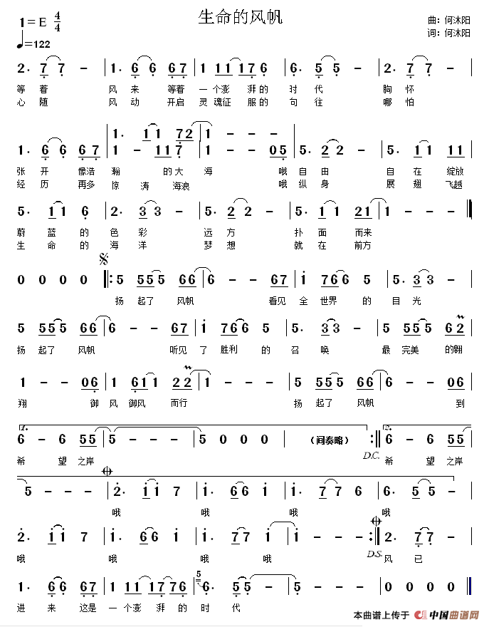 关于《生命的风帆》曲谱的评论