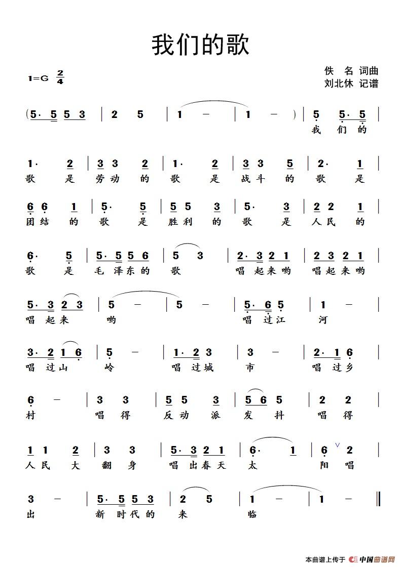 我们的歌(佚名 词曲、北休记谱版)(1)_原文件名:我们的歌.jpg