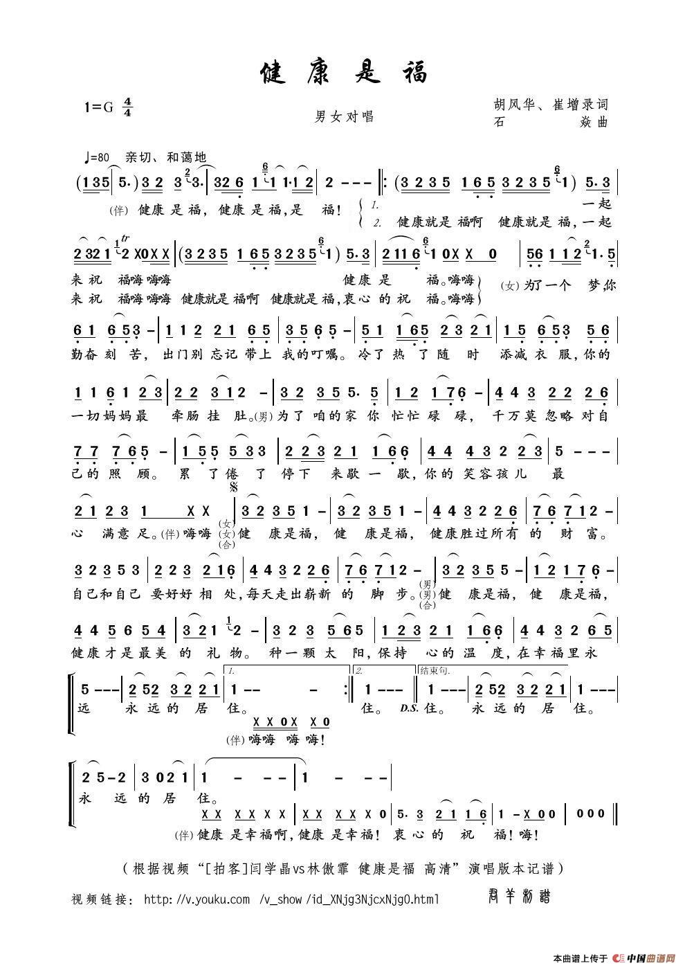 关于《健康是福》曲谱的评论