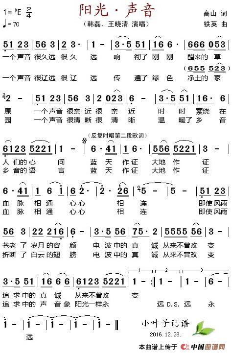 关于《阳光·声音》曲谱的评论