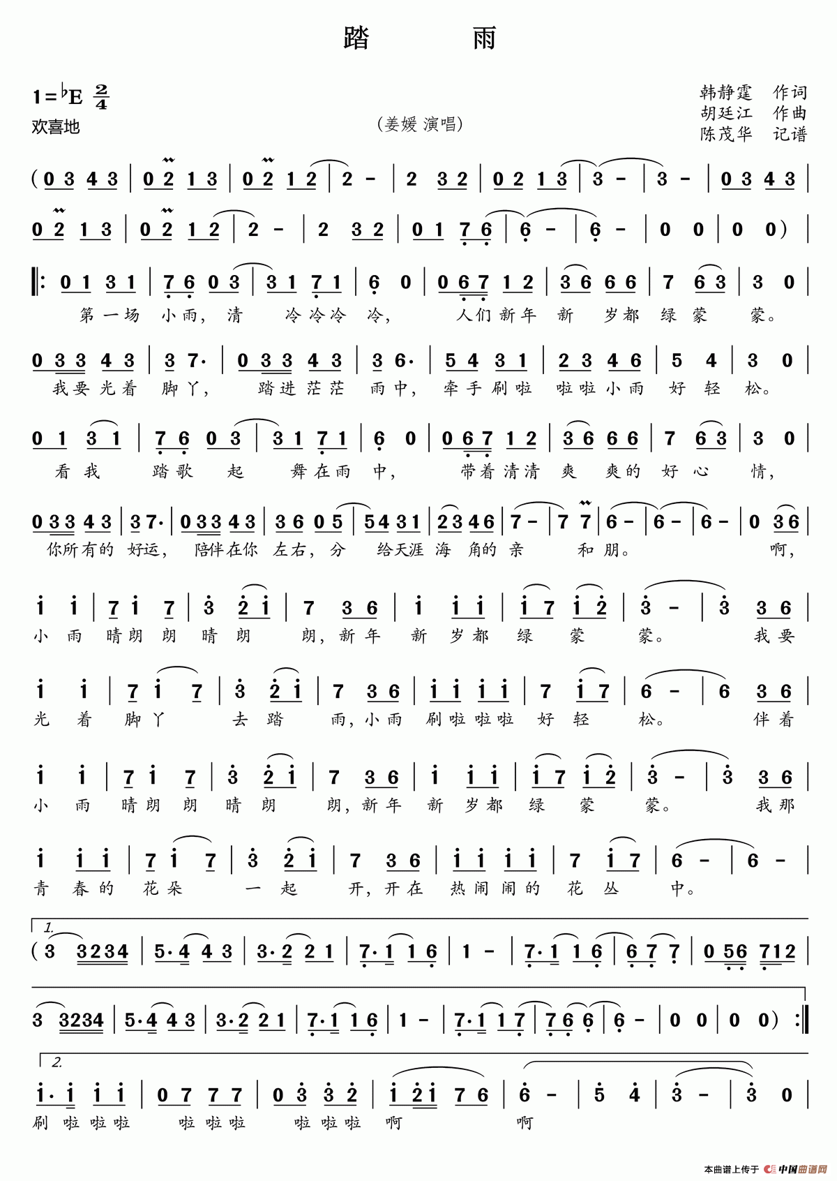 关于《踏雨》曲谱的评论
