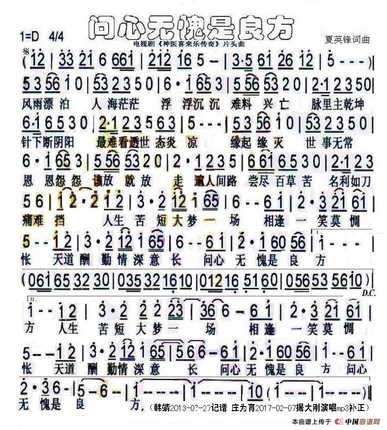 问心无愧是良方(电视剧《神医喜来乐传奇》片头曲)