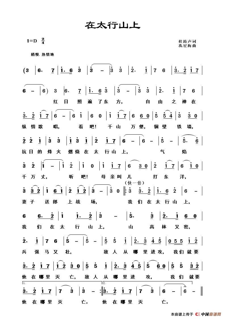 我们在太行山上,我们在太行山上;山高林又密,兵强马又壮!
