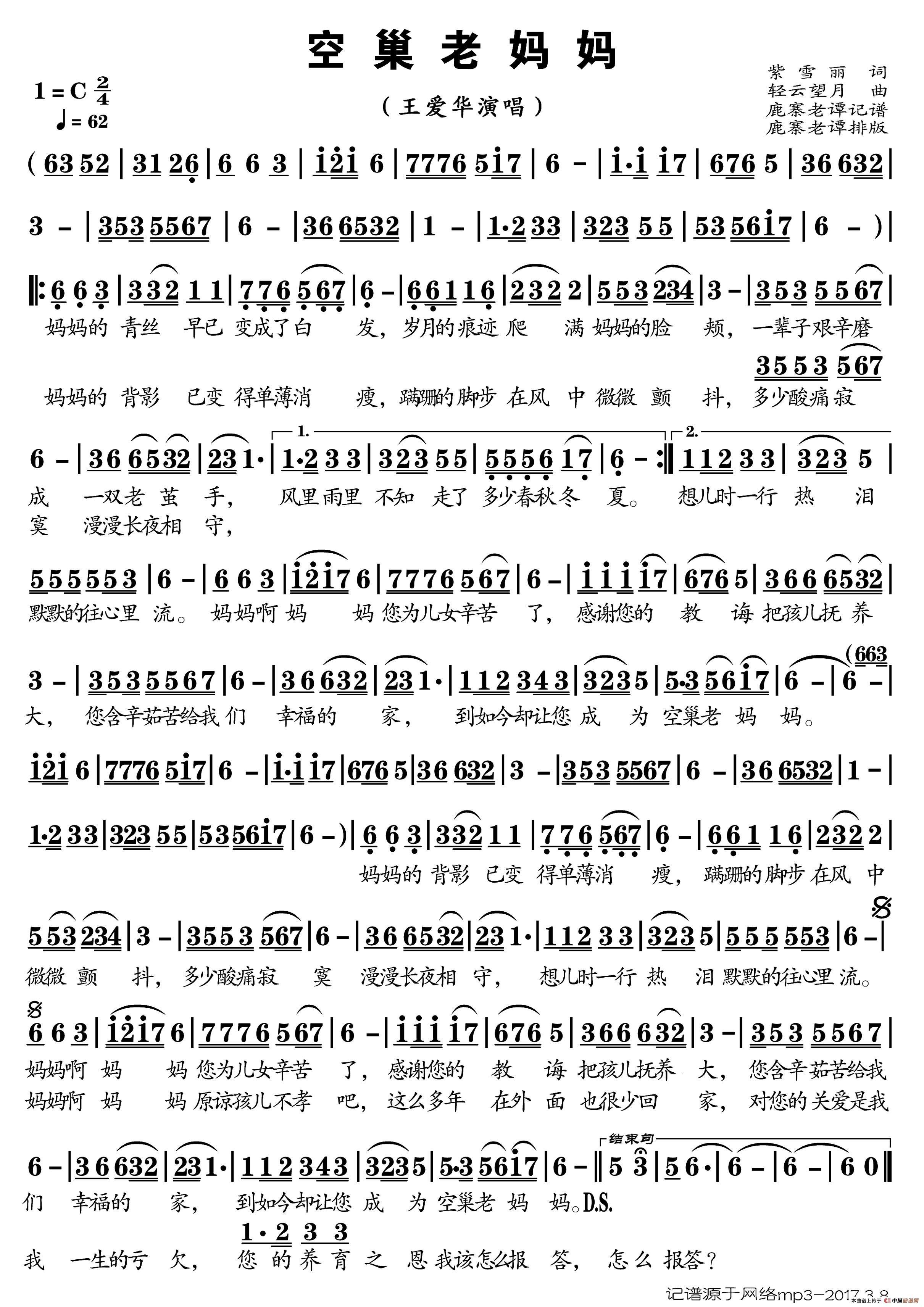 关于《空巢老妈妈》曲谱的评论