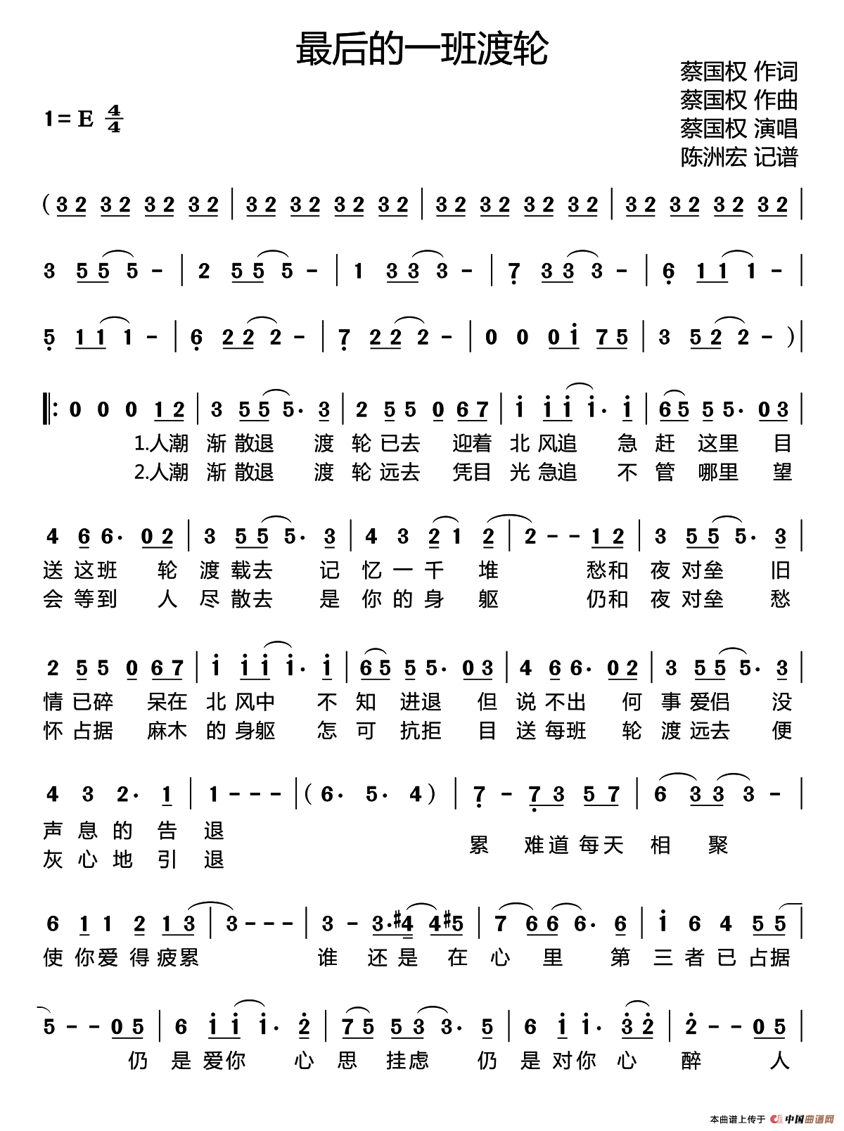 提示:在曲谱图片上单击右键,选择"图片另存为..."即可将曲谱保存到您的电脑中,打印时候可将图片插入到WORD中,调整合适大小打印即可。