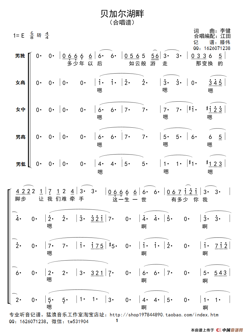 作曲:李健词曲、江田编配合唱 来源:记谱 上传:猛浪音乐
