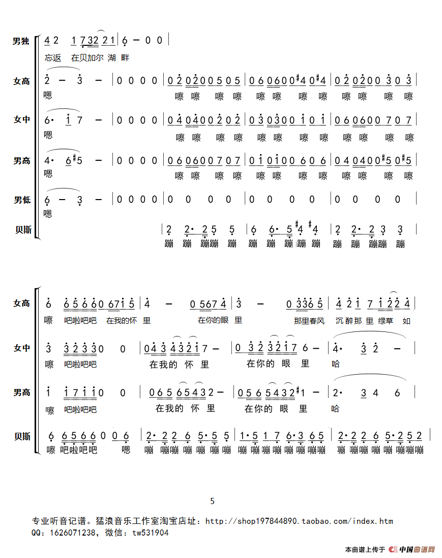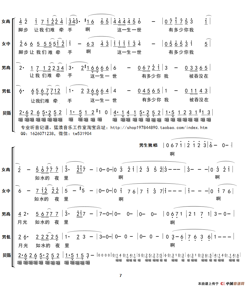 提示:在曲谱图片上单击右键,选择“图片另存为...”即可将曲谱保存到您的电脑中,打印时候可将图片插入到WORD中,调整合适大小打印即可。