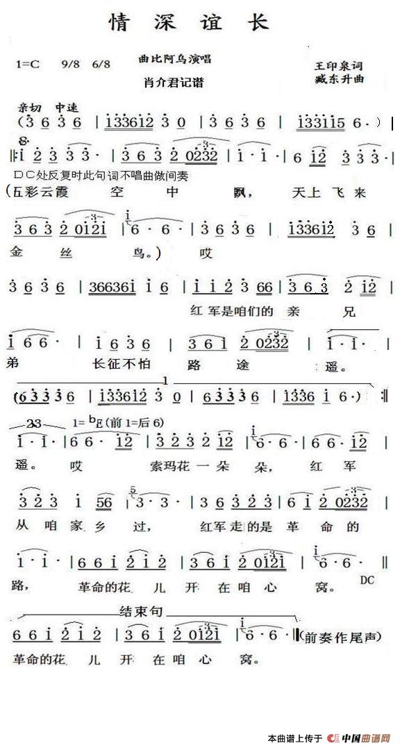 关于《情深谊长》曲谱的评论