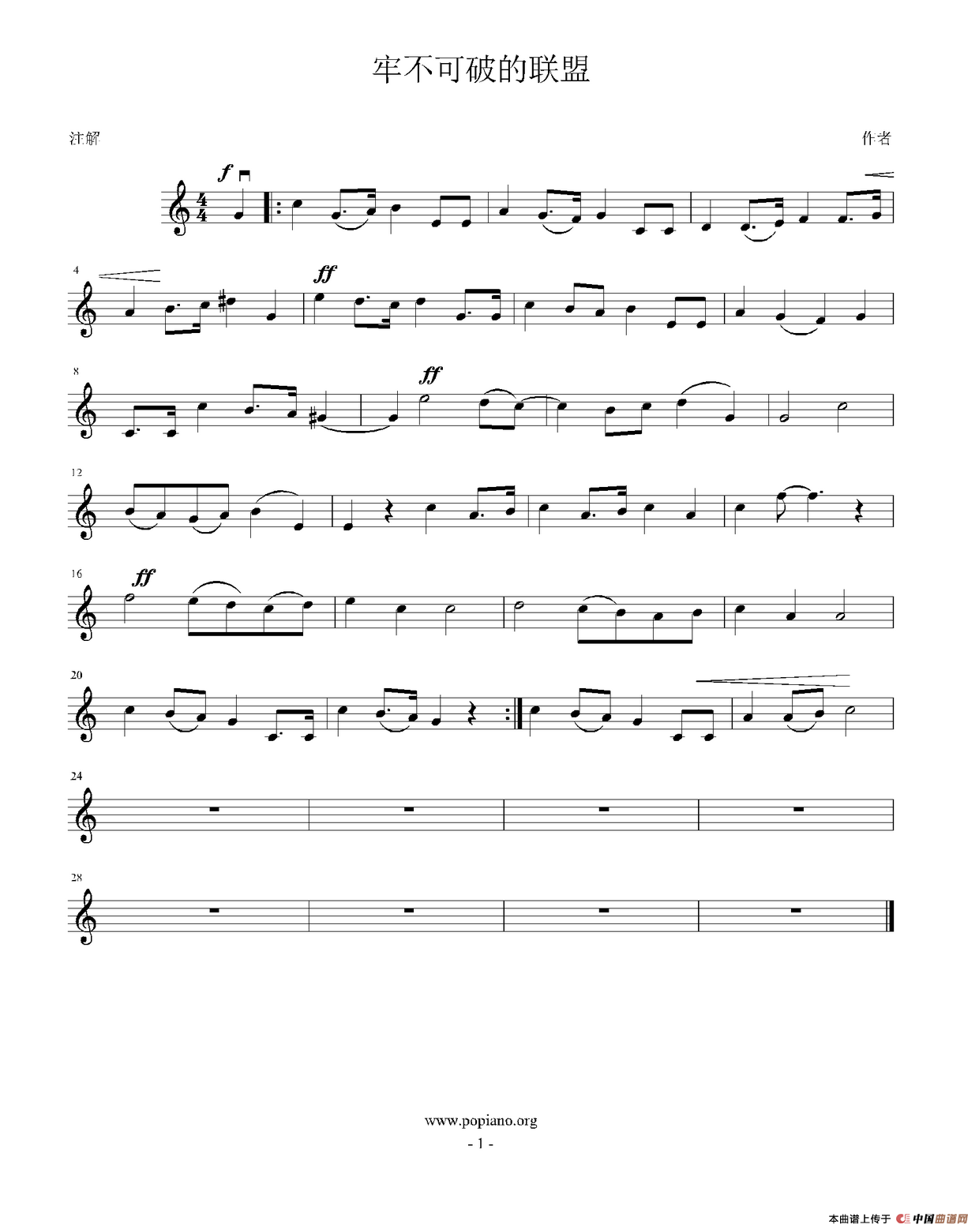 前苏联国歌《牢不可破的联盟》,又称作《神圣的联盟》,是苏联国歌的中文非正式曲名。亚历山大·瓦西里耶维奇·亚历山德罗夫(Александр Васильевич Александров)作曲。记谱可能存在少许错误,见谅。