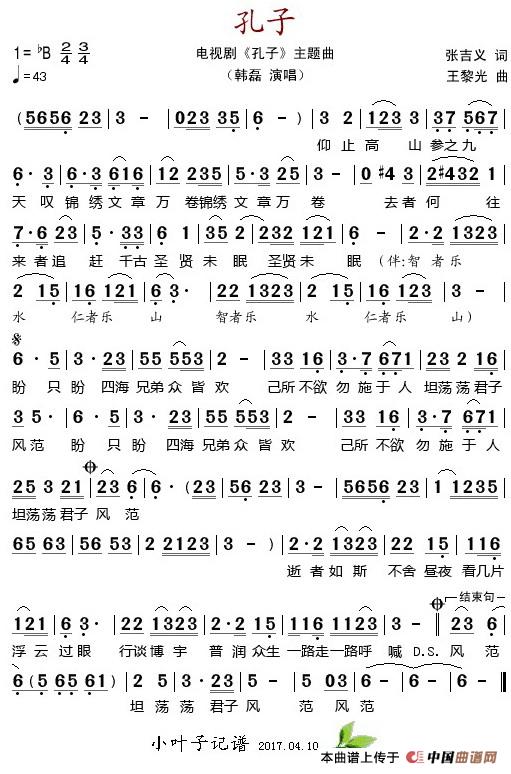 关于《孔子》曲谱的评论