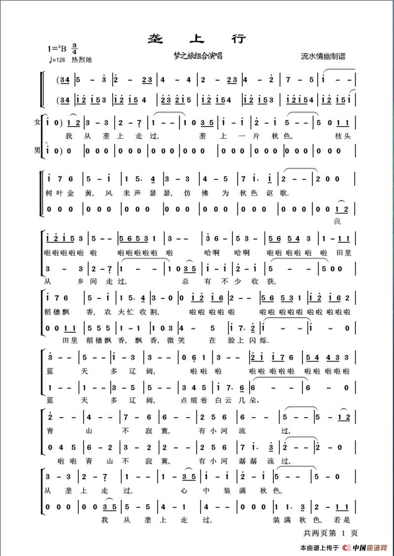 提示:在曲谱图片上单击右键,选择“图片另存为...”即可将曲谱保存到您的电脑中,打印时候可将图片插入到WORD中,调整合适大小打印即可。