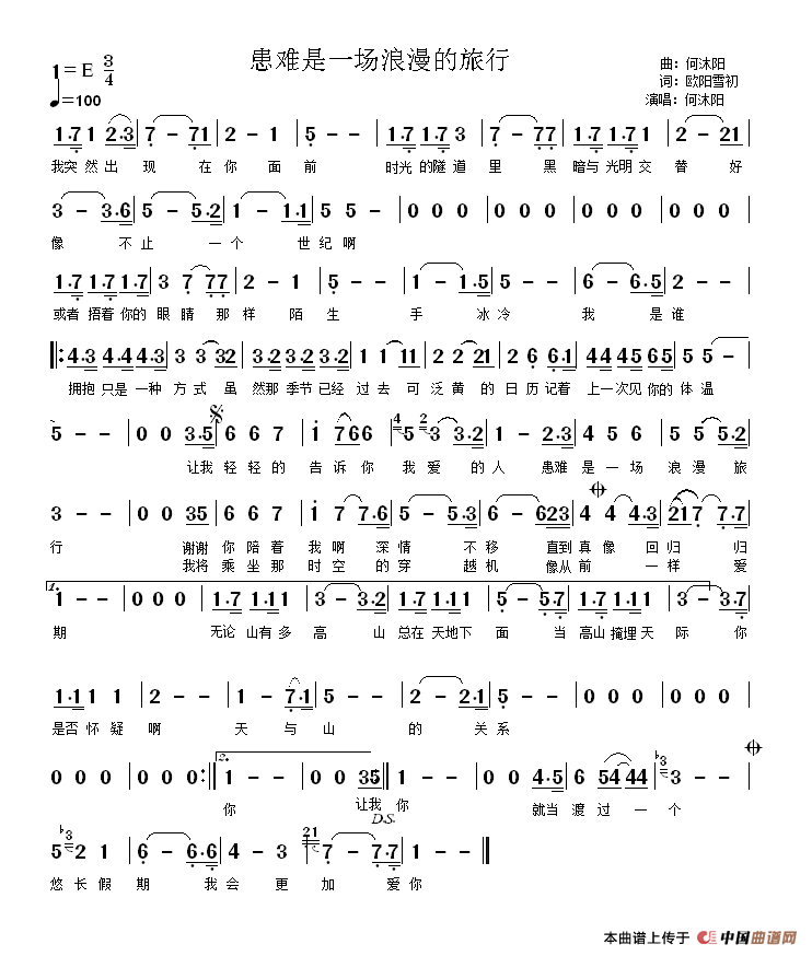 关于《患难是一场浪漫的旅行》曲谱的评论