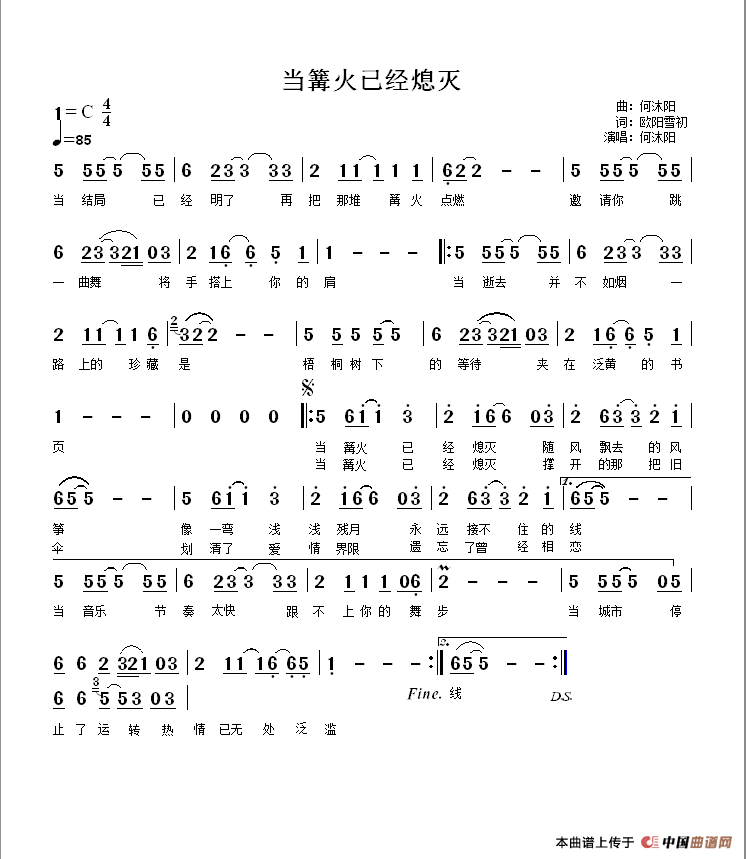 关于《当篝火已经熄灭》曲谱的评论