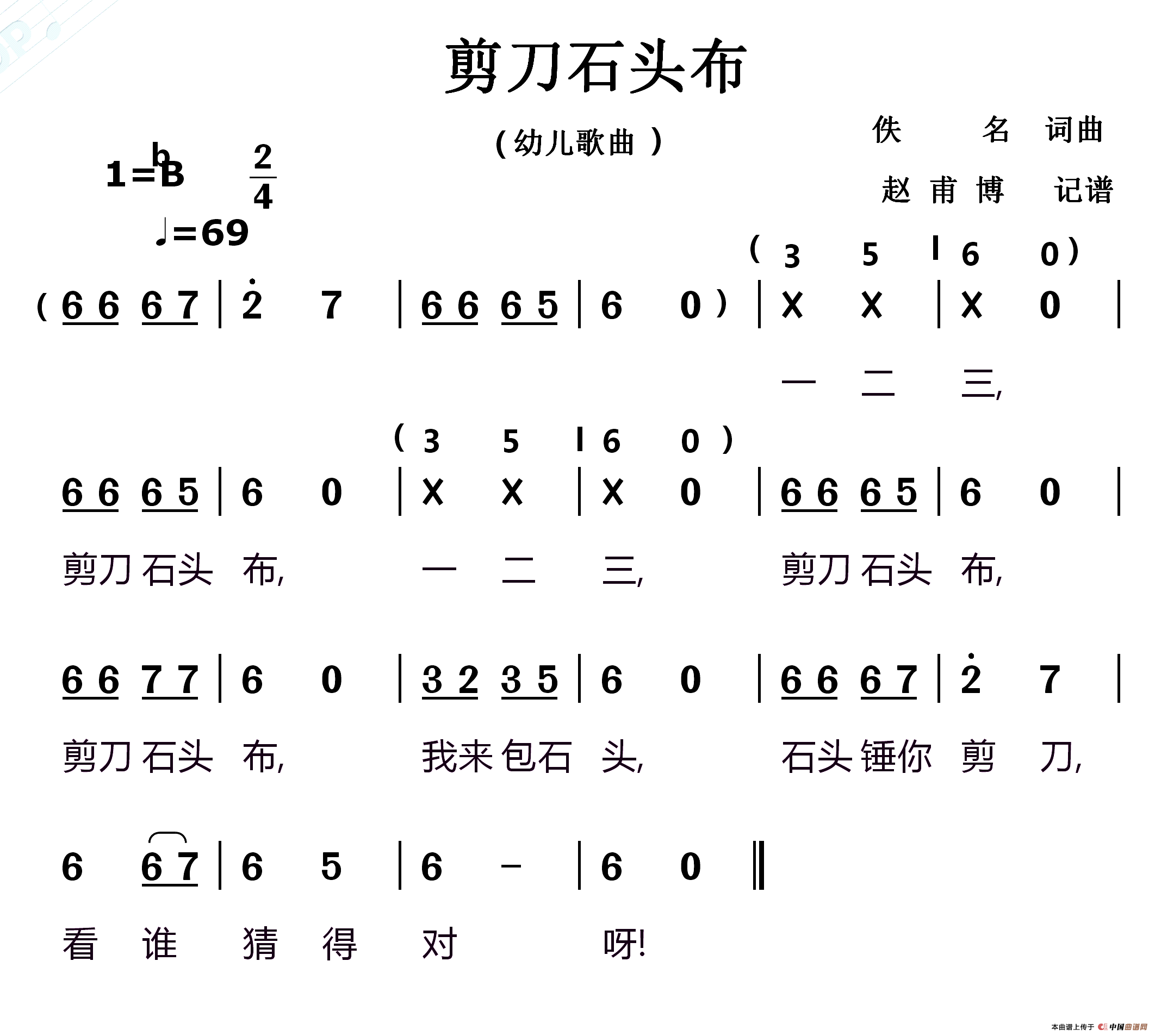 关于《剪刀石头布》曲谱的评论