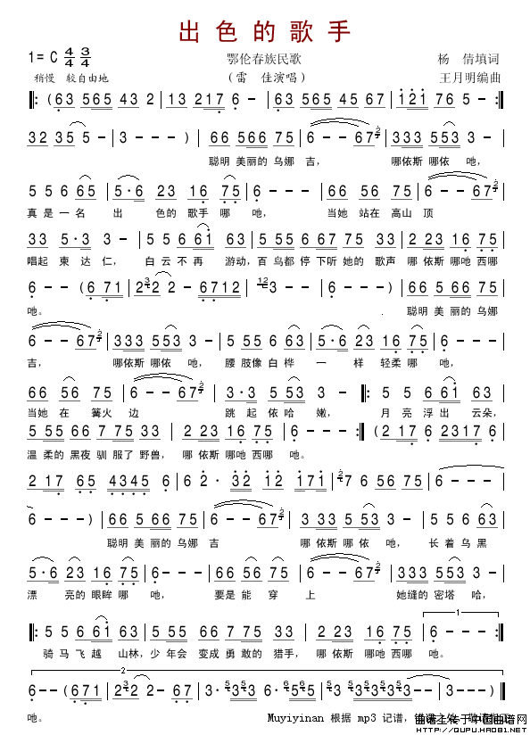 提示:在曲谱图片上单击右键,选择“图片另存为...”即可将曲谱保存到您的电脑中,打印时候可将图片插入到WORD中,调整合适大小打印即可。