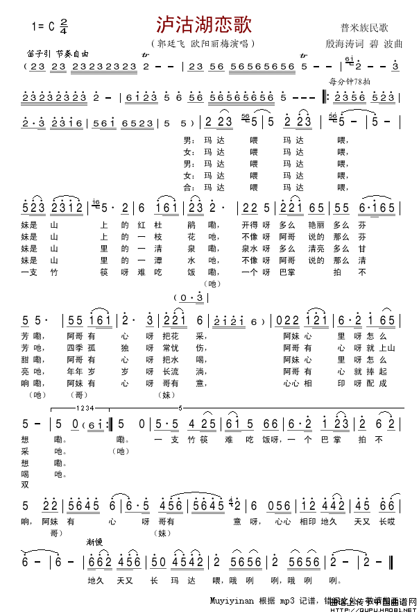 提示:在曲谱图片上单击右键,选择“图片另存为...”即可将曲谱保存到您的电脑中,打印时候可将图片插入到WORD中,调整合适大小打印即可。