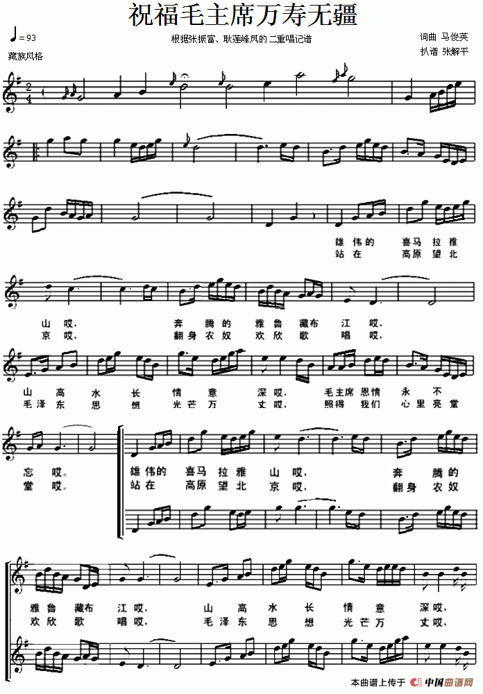 关于《祝福毛主席万寿无疆》曲谱的评论