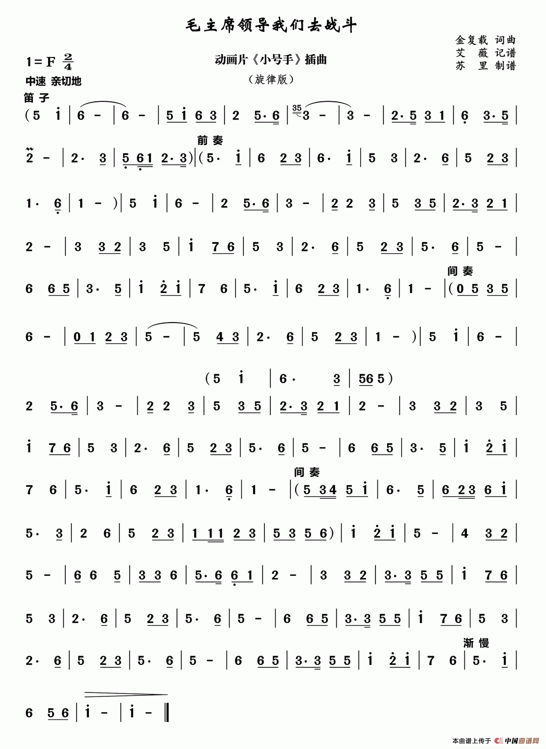 毛主席领导我们去战斗(动画片《小号手》插曲、旋律版)