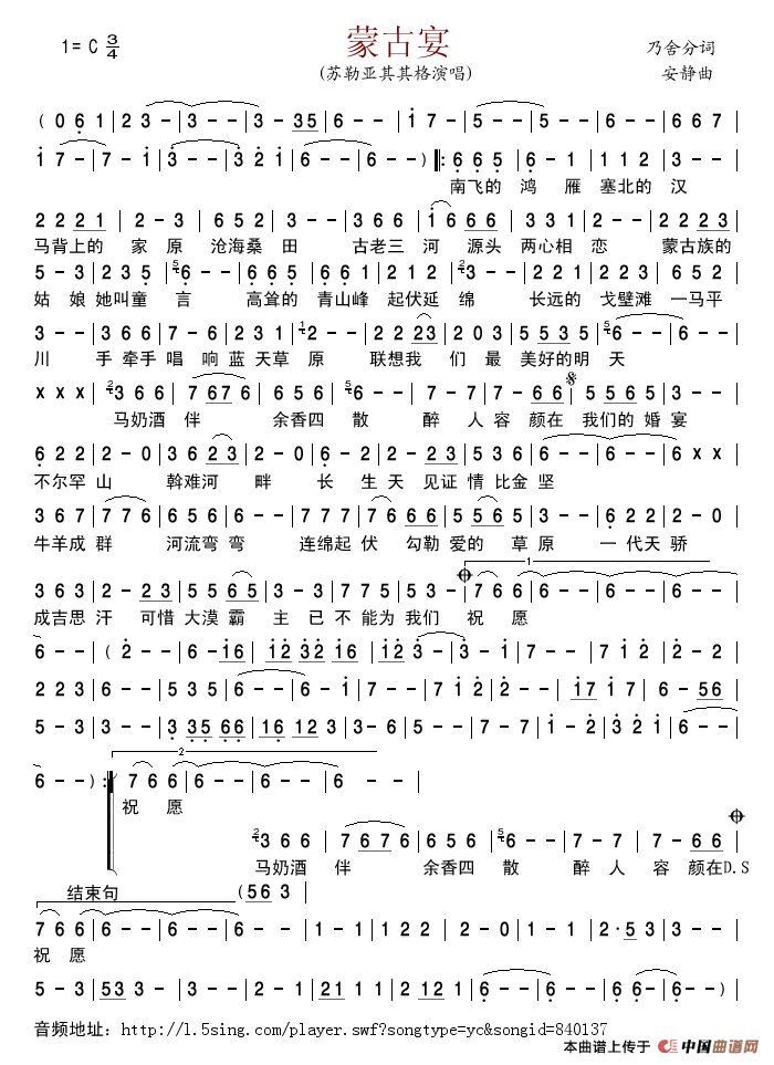 关于《蒙古宴》曲谱的评论
