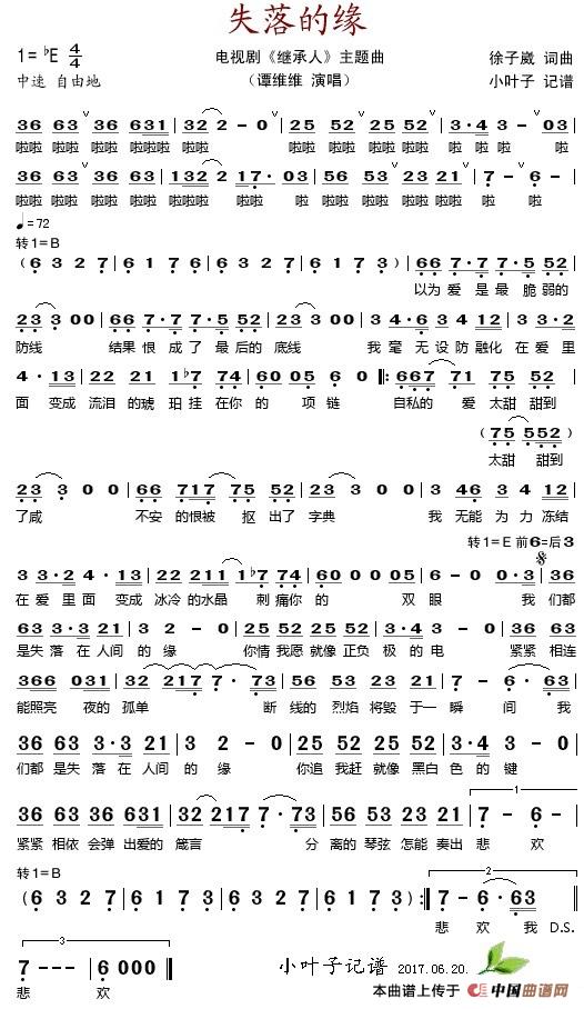 关于《失落的缘》曲谱的评论