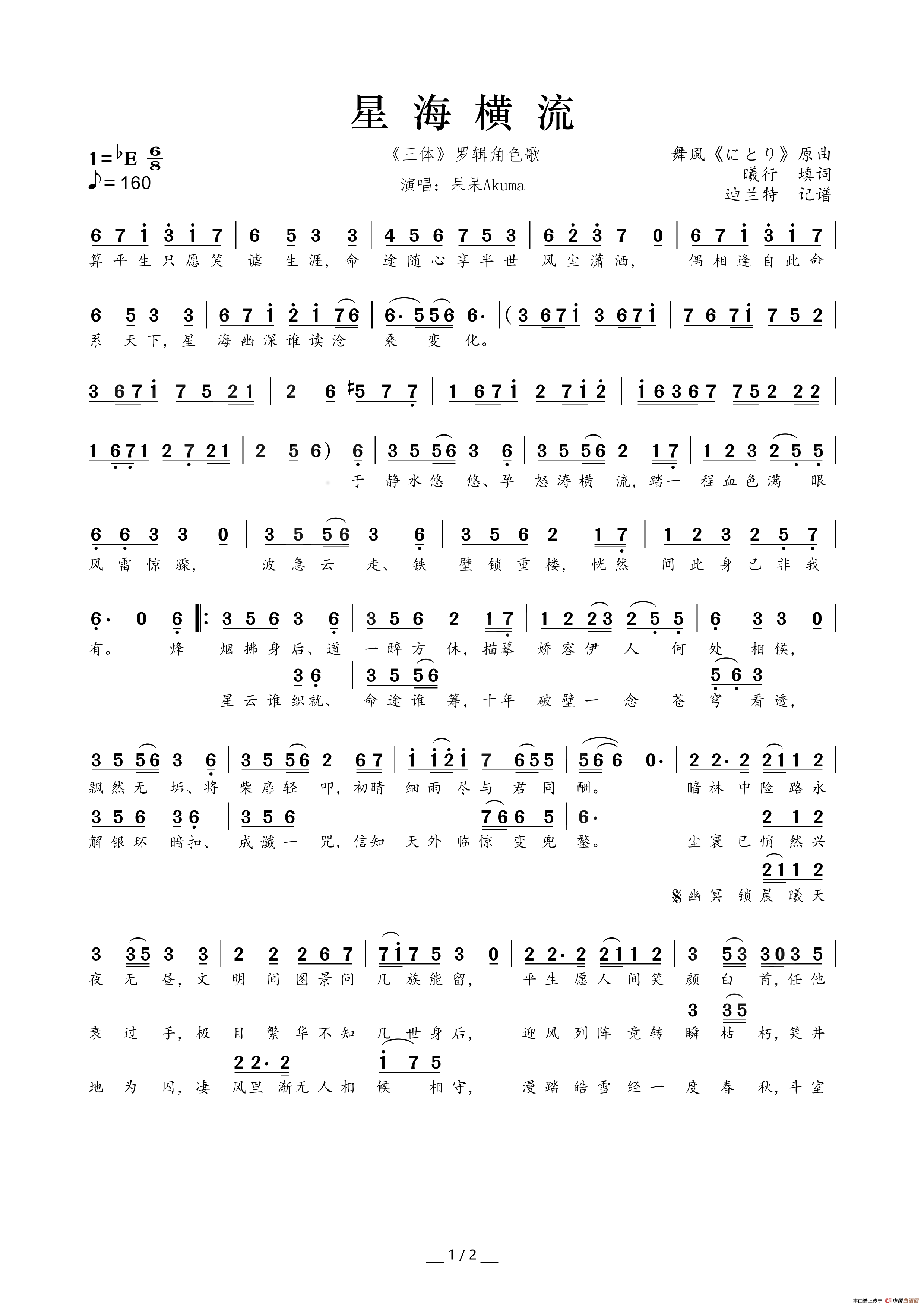 提示:在曲谱图片上单击右键,选择"图片另存为..."即可将曲谱保存到您的电脑中,打印时候可将图片插入到WORD中,调整合适大小打印即可。