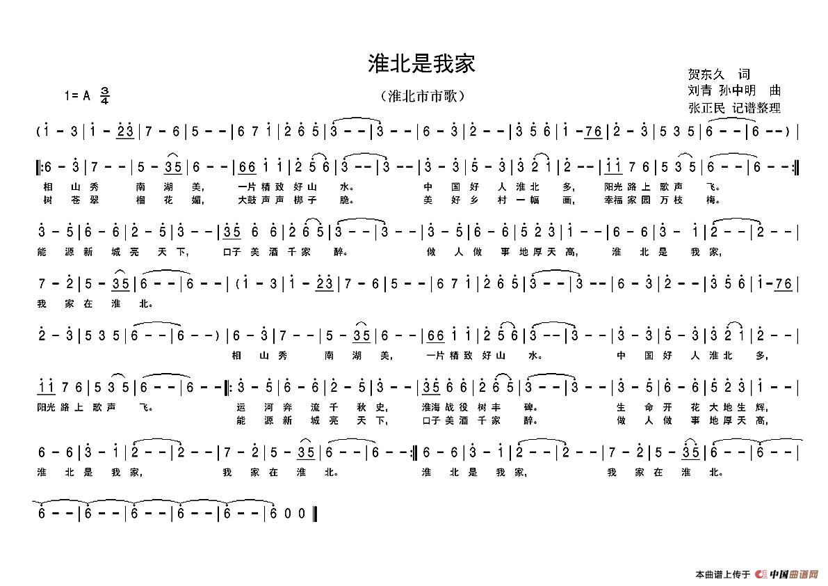 淮北市市歌,贺东久作词,刘青、孙中明作曲,张也演唱。