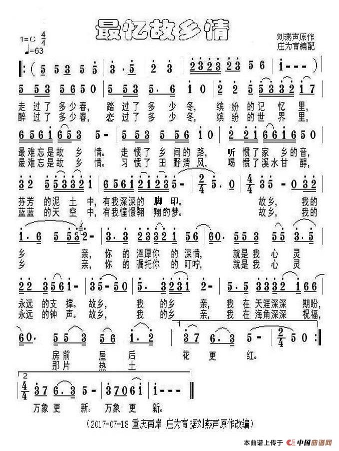 庄为育据刘燕声原作改编,原曲谱地址:http://www.qupu123.com/yuanchuang/p274964.html