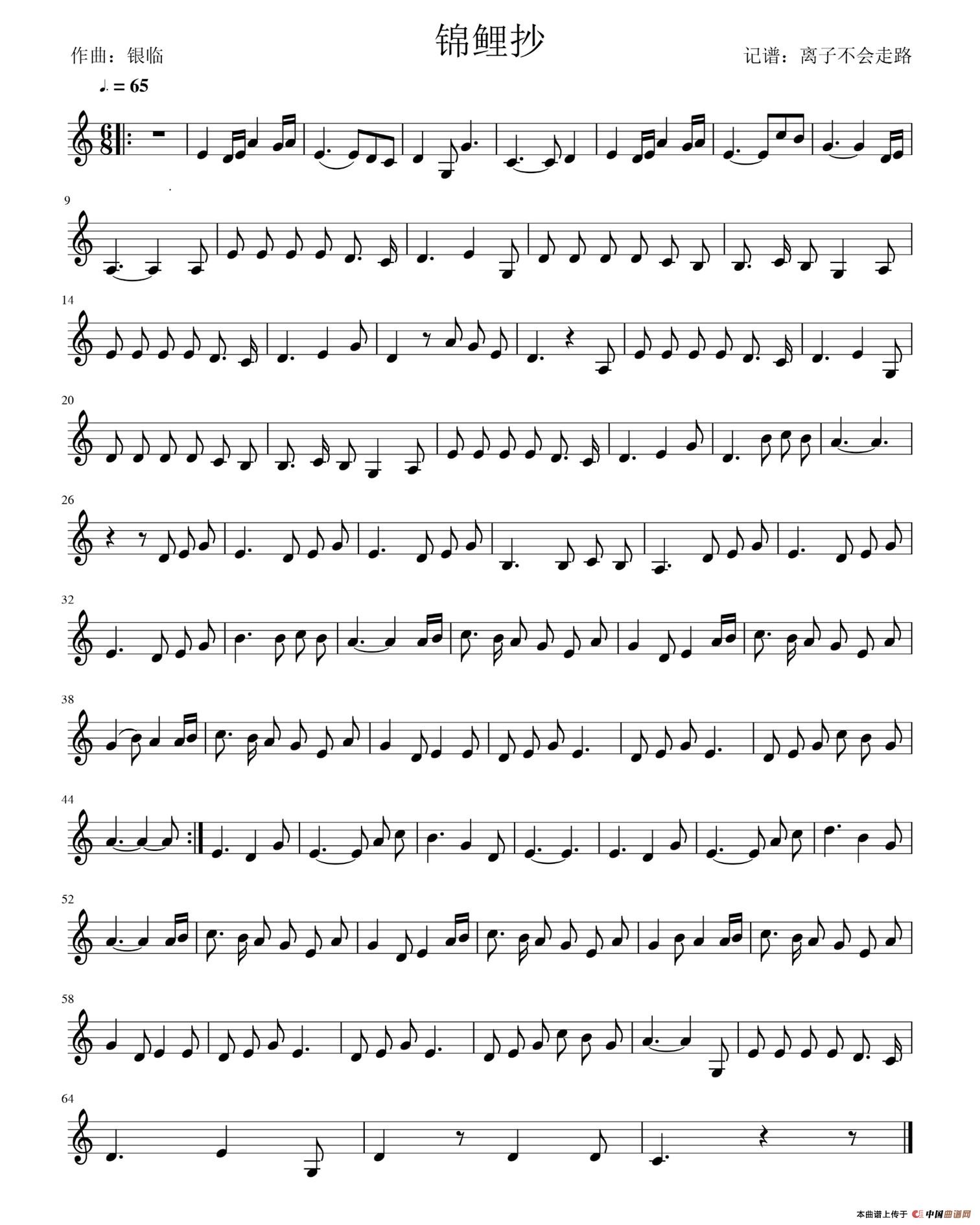 《锦鲤抄》由慕清明作词,灰原穷编曲,银临作曲,弹棉花的GG弹奏二胡,云の泣、银临演唱的一首网络歌曲。向异(银临)介绍,这首歌来源于自己的一场梦境,并由此带来了这样一个美丽的故事:从前有一位痴迷于画鲤鱼的画师。天天画鱼,喂鱼,与鲤鱼有了深厚的感情。某一天他家里发了大火。画师由于没法将鲤鱼带走而迟迟不肯脱离火海。在火将烧身之时,他看见了一个人,护送他安全离开。第二天画师醒来,看见池塘里全都干枯,鲤鱼也不见了,突然领悟到原来那当天救他之人便是鲤鱼幻化而成。
