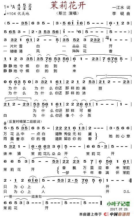 茉莉花开(一江水词 李砚曲)(1)_原文件名:茉莉花开(一江水词 李砚曲)斯兰演唱.jpg