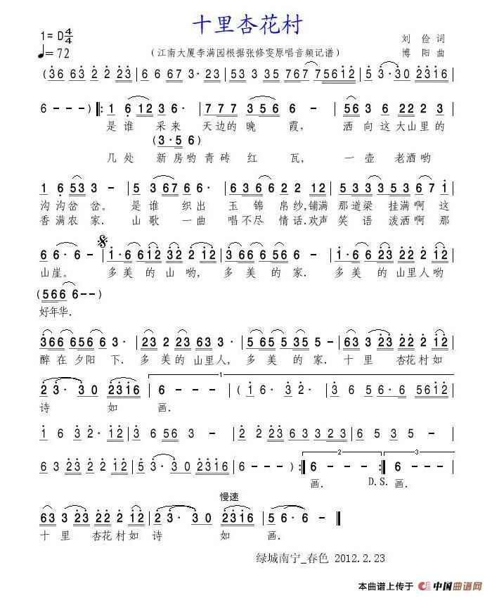 关于《十里杏花村》曲谱的评论