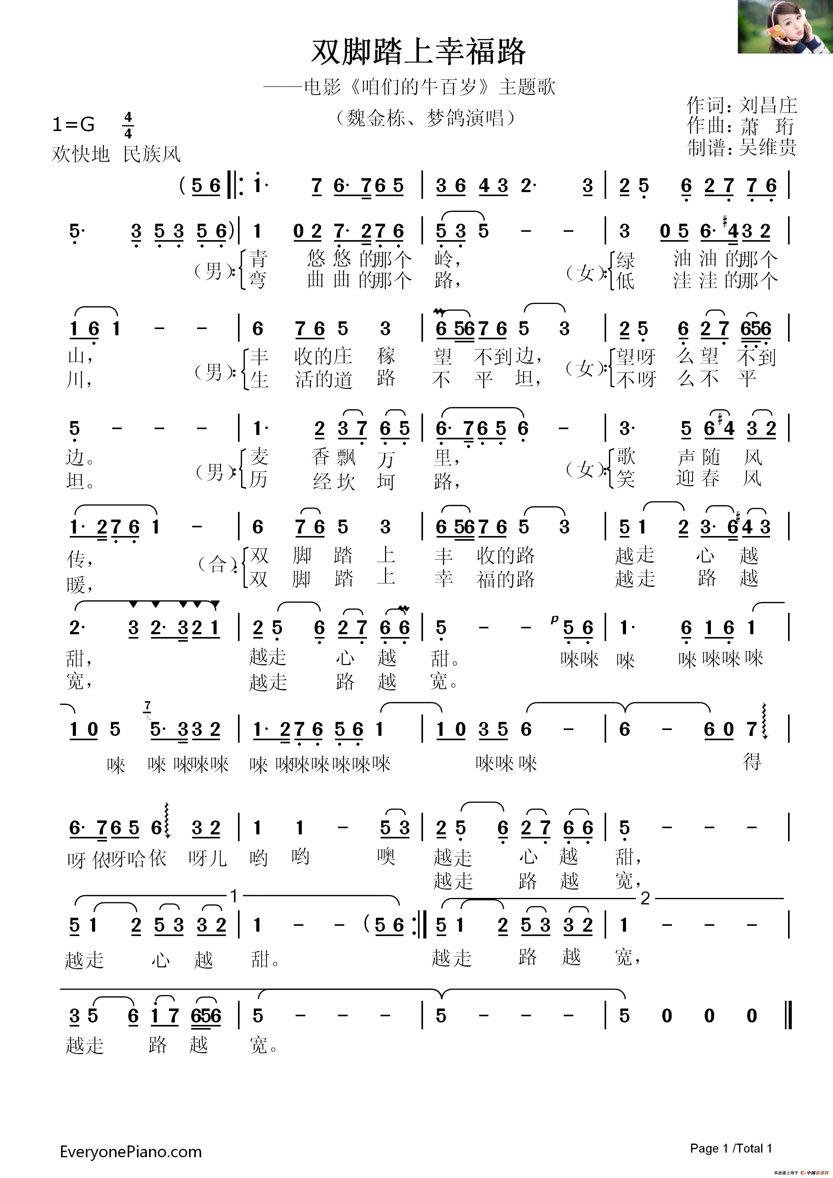 提示:在曲谱图片上单击右键,选择“图片另存为...”即可将曲谱保存到您的电脑中,打印时候可将图片插入到WORD中,调整合适大小打印即可。