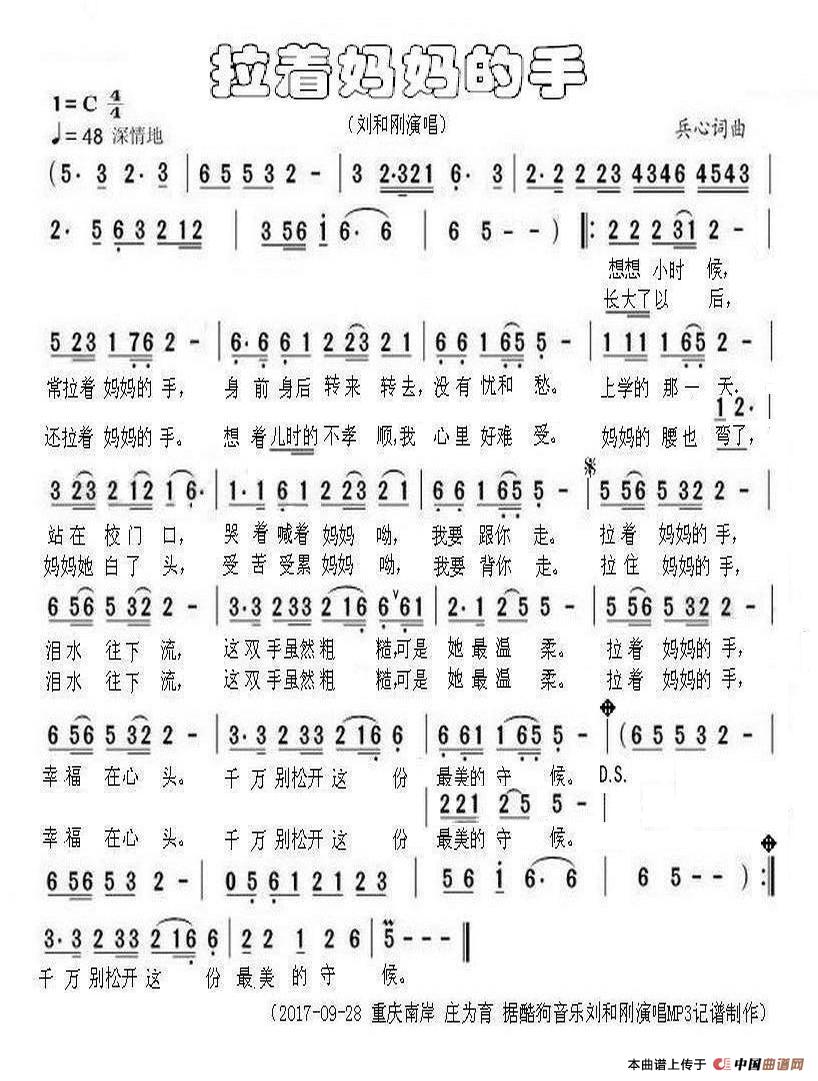 编辑按:歌名有误,应该是《拉住妈妈的手》,谱站已经有其他版本的制谱。