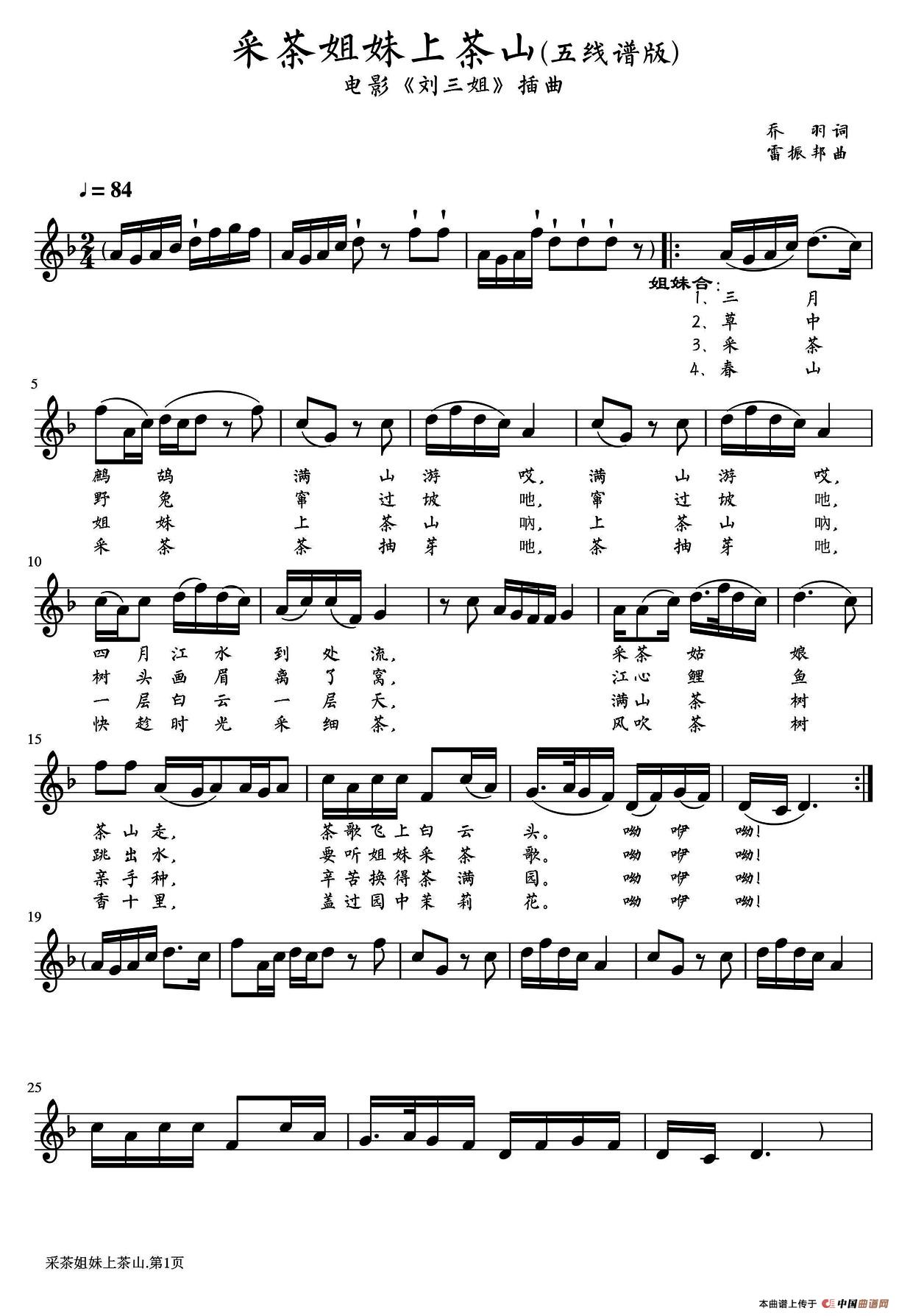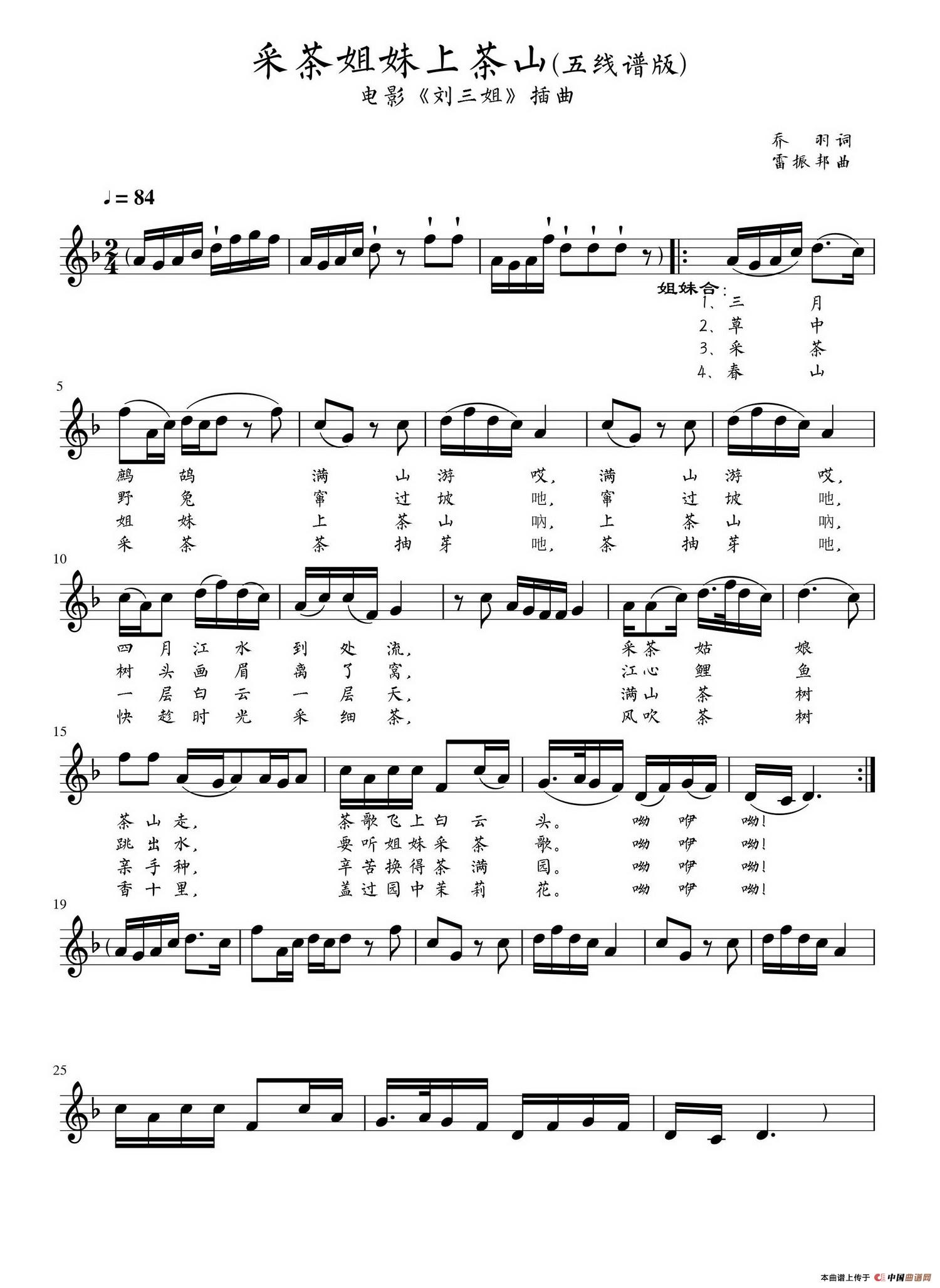 关于《采茶姐妹上茶山(电影《刘三姐》插曲)》曲谱的评论