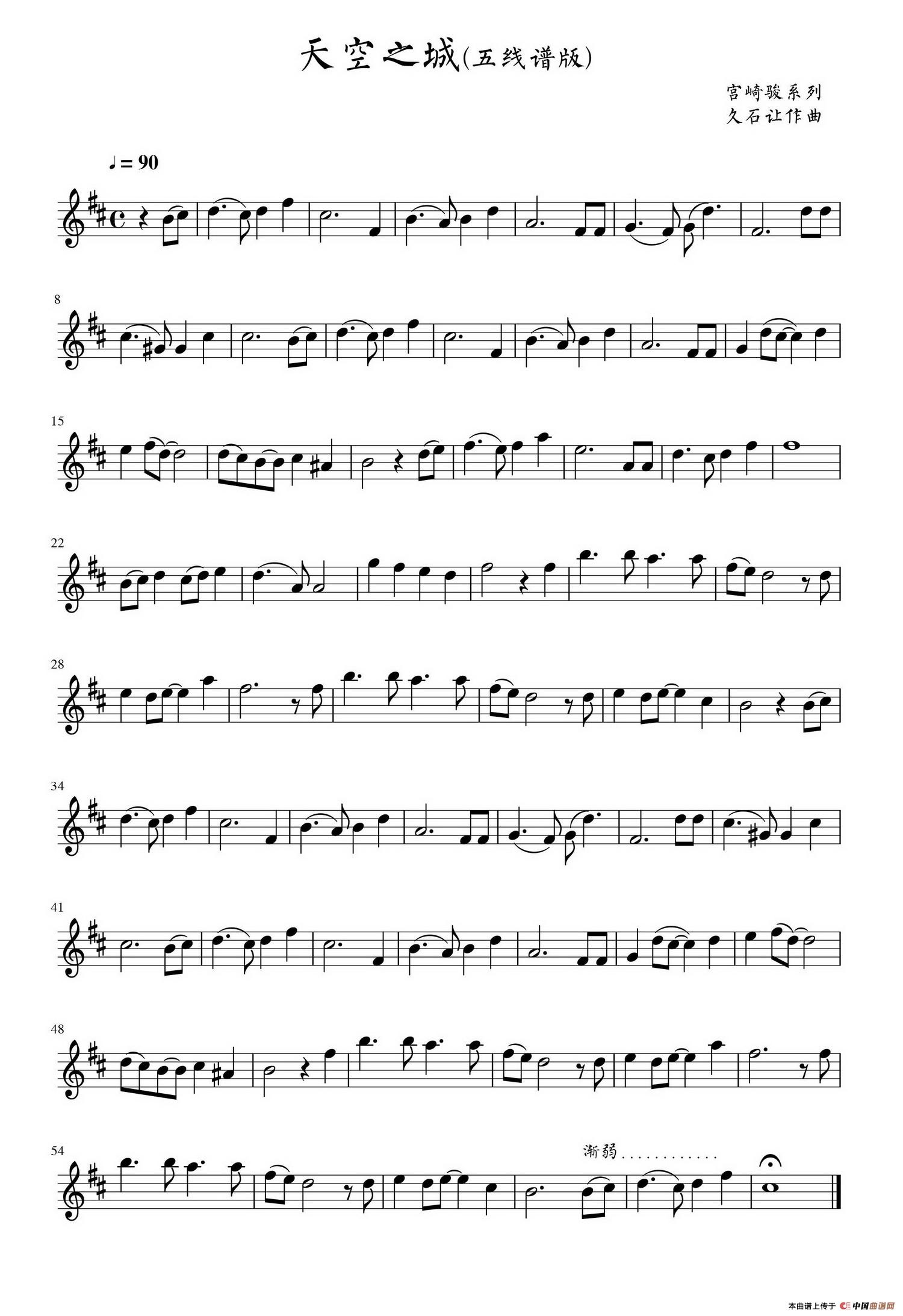 天空之城(主旋律五线谱)