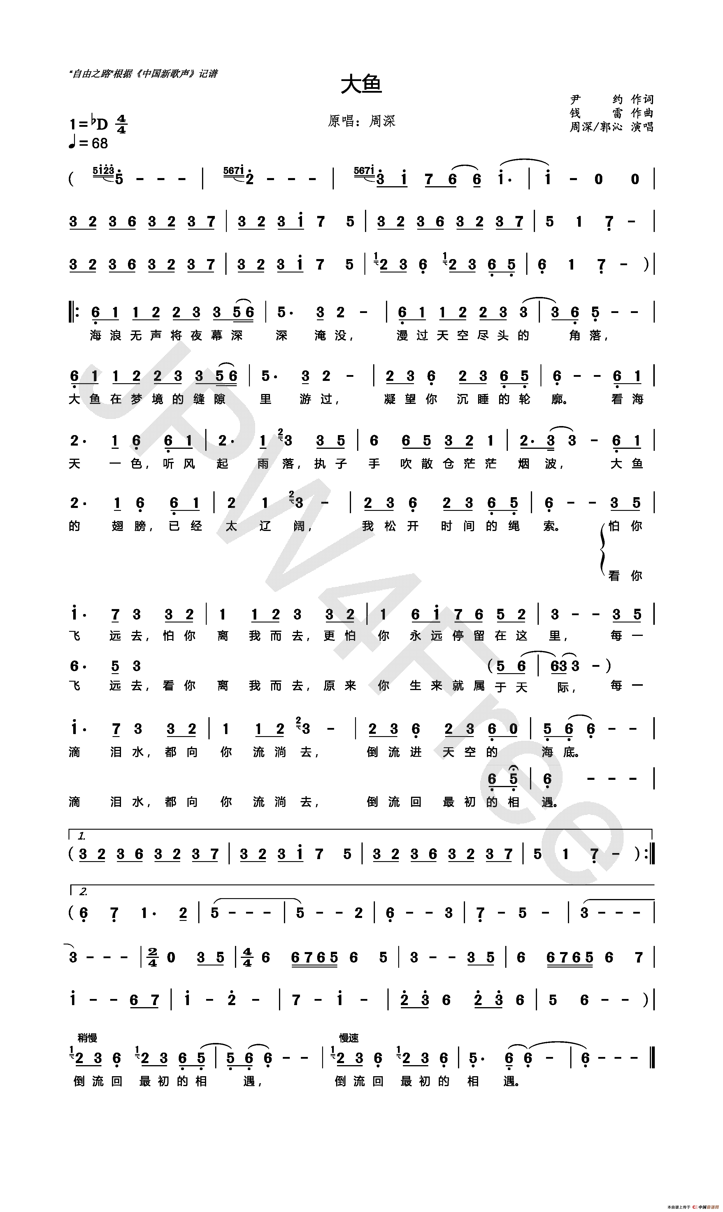 提示:在曲谱图片上单击右键,选择“图片另存为...”即可将曲谱保存到您的电脑中,打印时候可将图片插入到WORD中,调整合适大小打印即可。