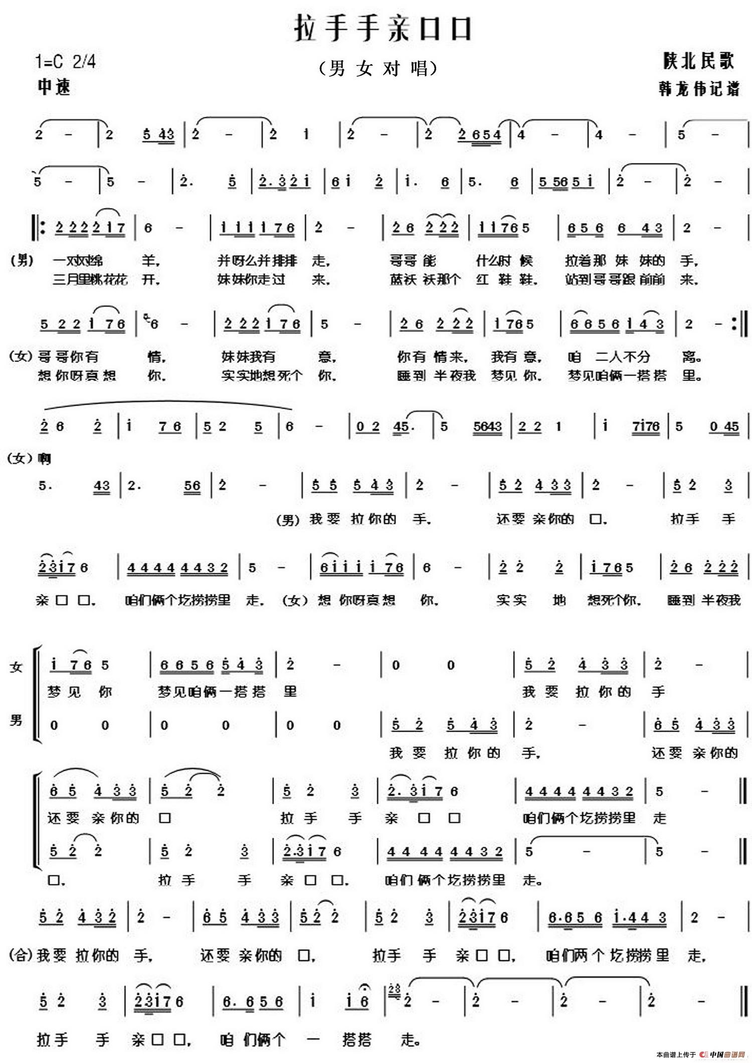 拉手手亲口口(韩龙伟记谱版)