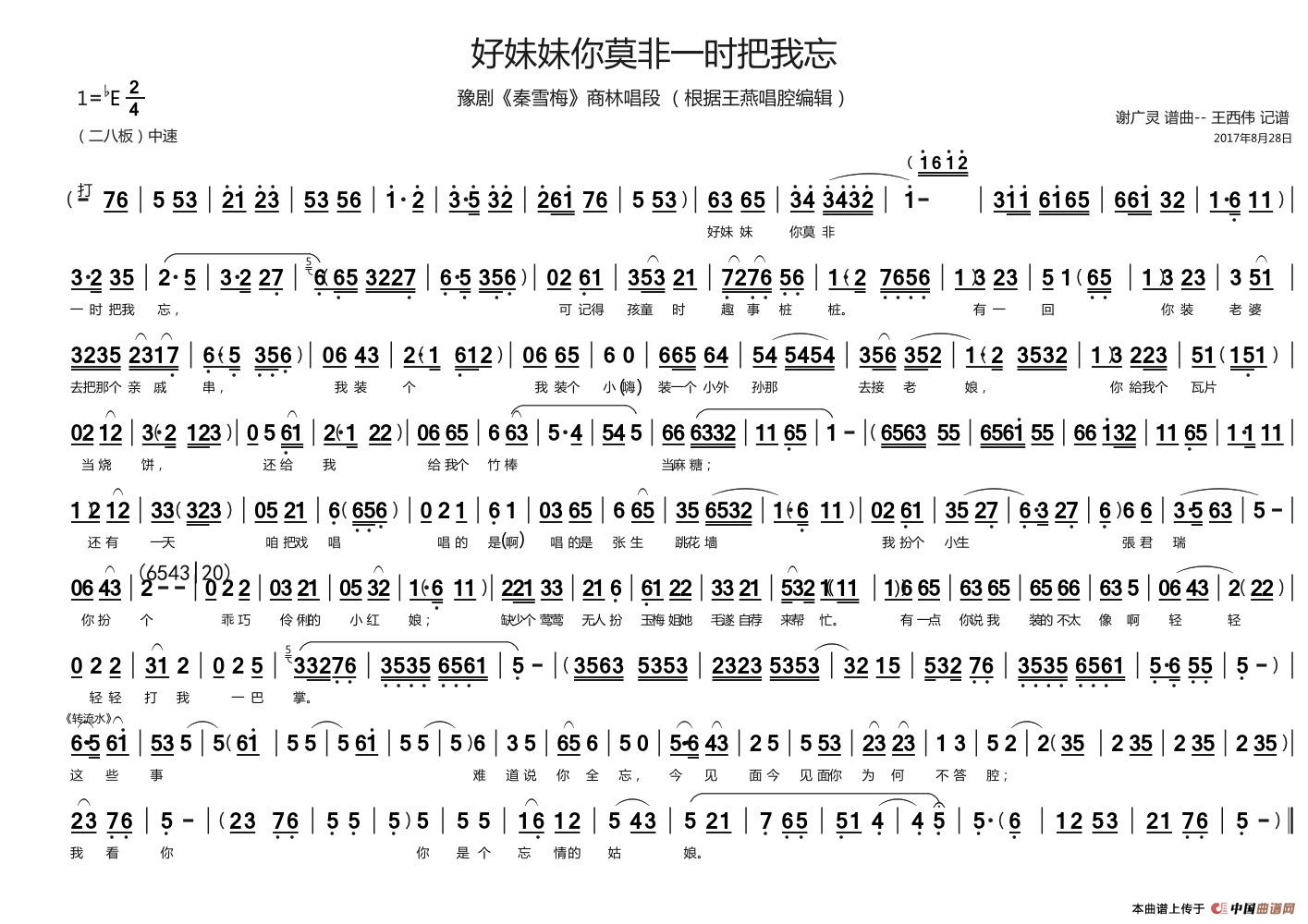 关于《好妹妹你莫非一时把我忘》曲谱的评论