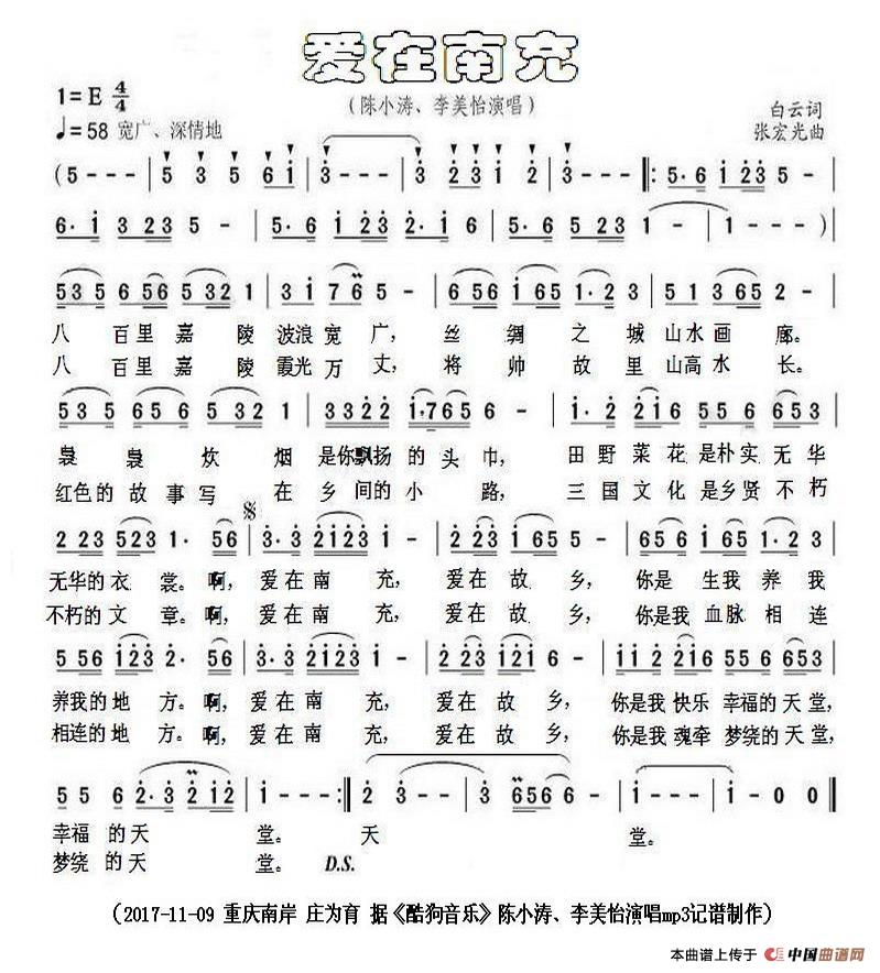 关于《爱在南充》曲谱的评论