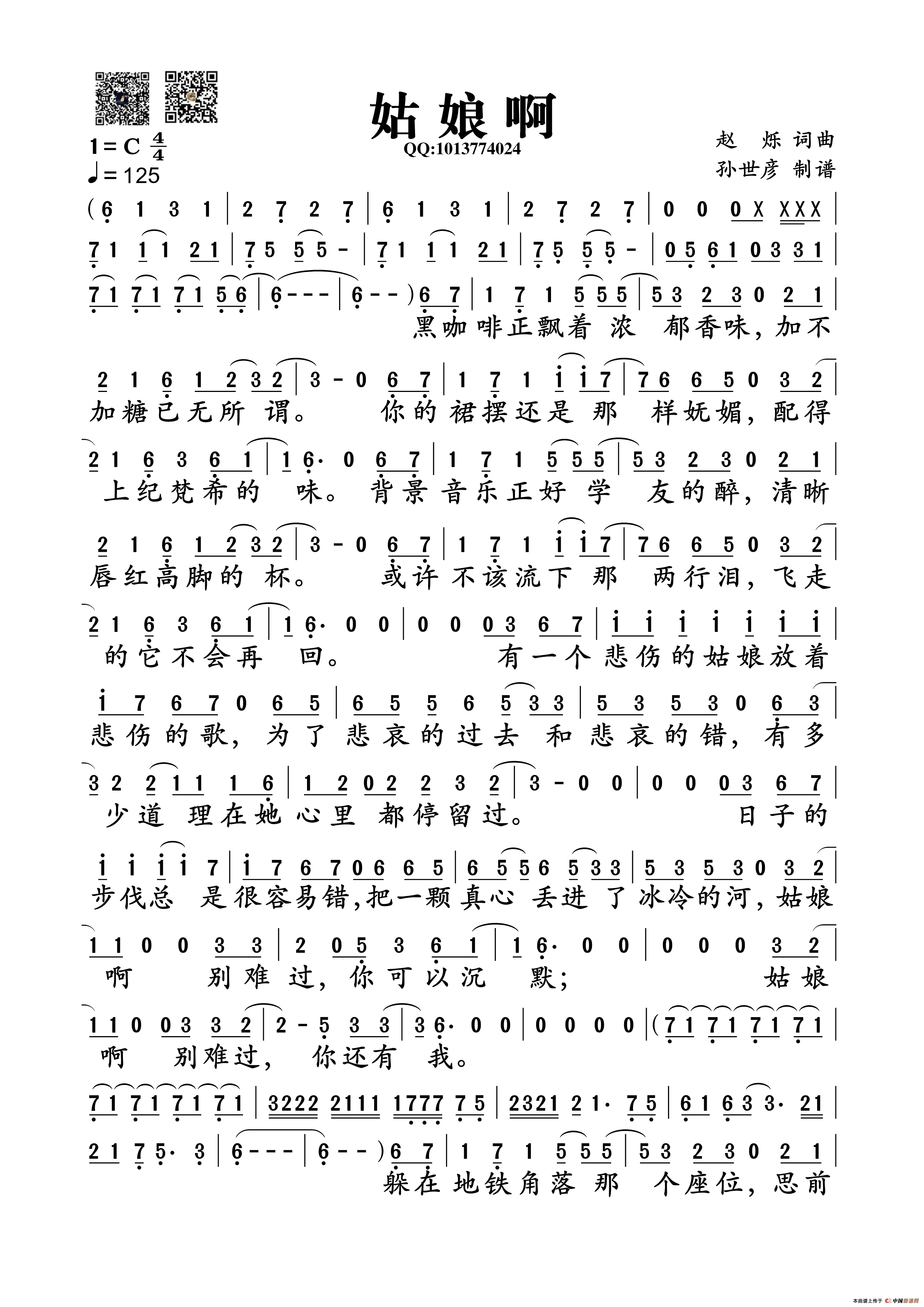 赵烁词曲 孙世彦制谱