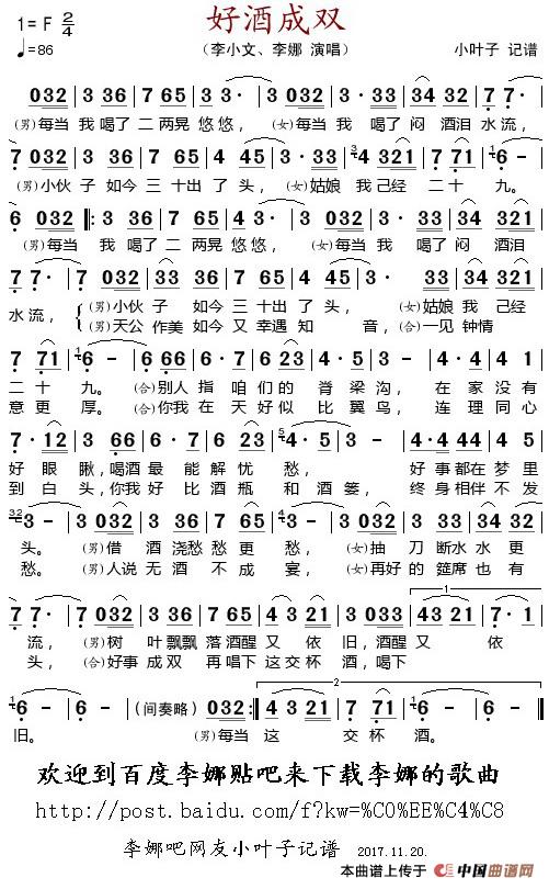 演唱(奏):李小文、李娜 来源:小叶子记谱制谱 上传:热爱音乐88