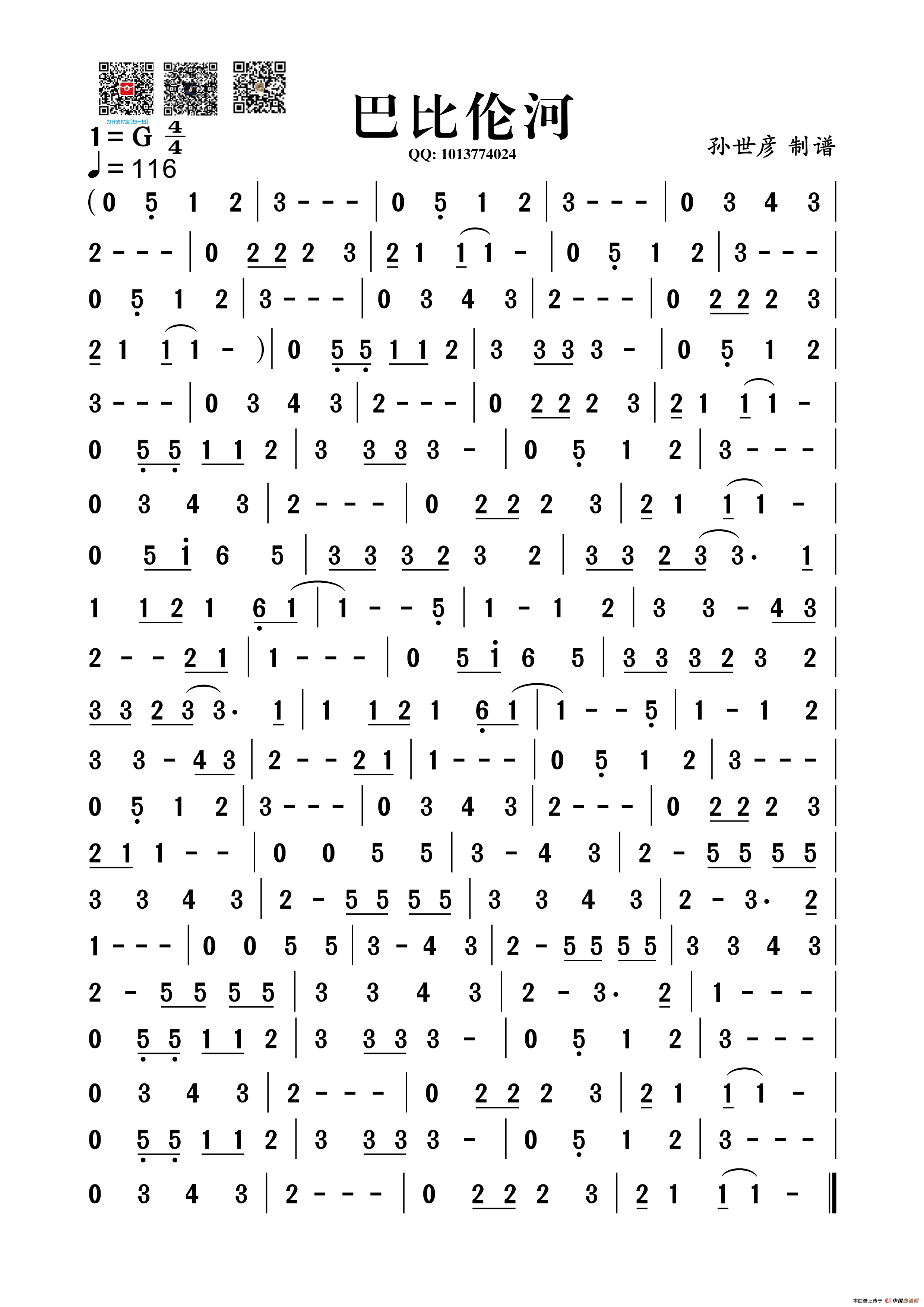 提示:在曲谱图片上单击右键,选择“图片另存为...”即可将曲谱保存到您的电脑中,打印时候可将图片插入到WORD中,调整合适大小打印即可。