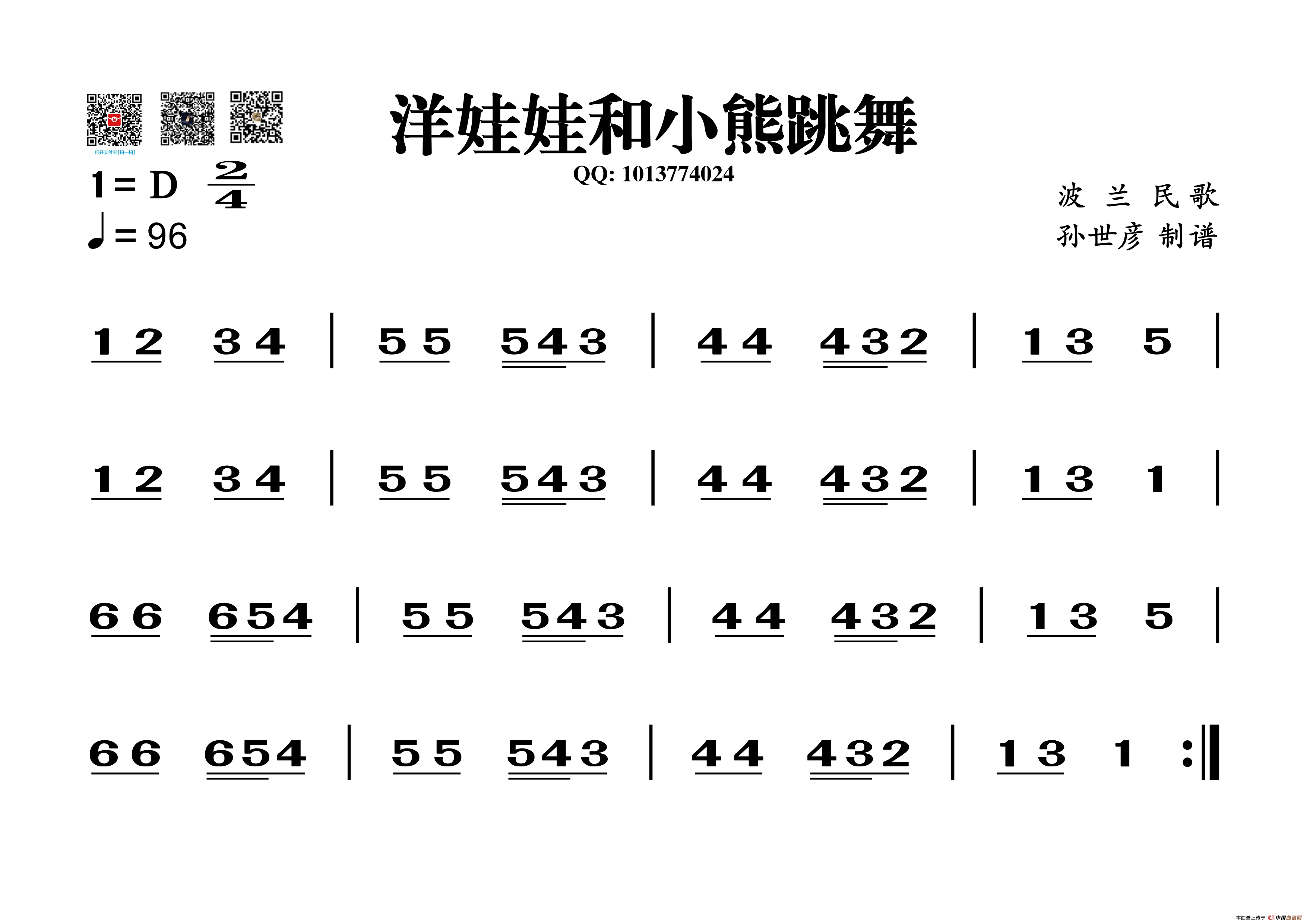 洋娃娃和小熊跳舞(葫芦丝谱)