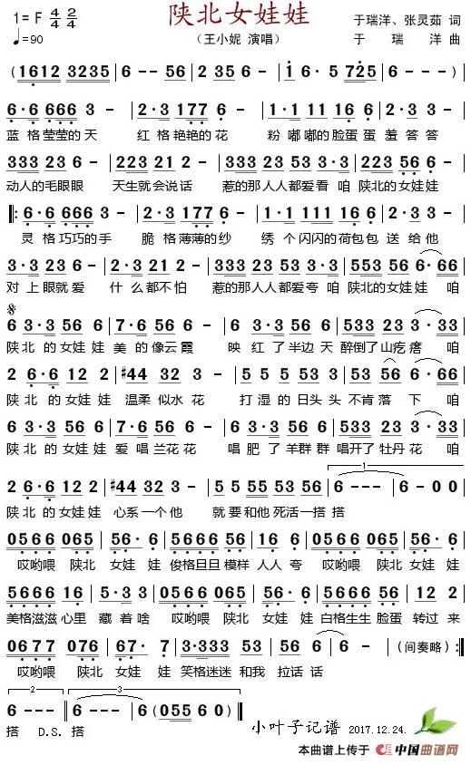 关于《陕北女娃娃 》曲谱的评论