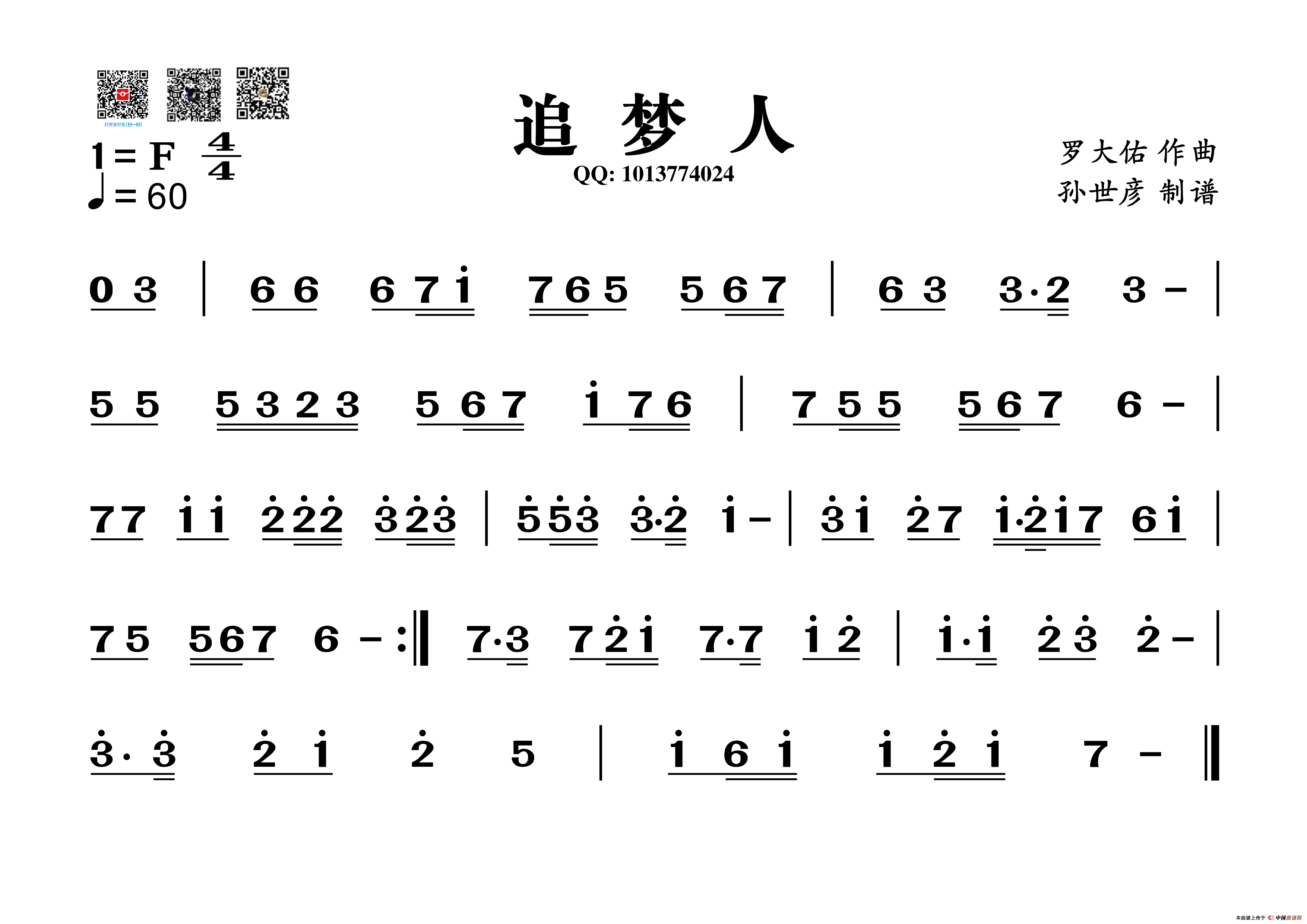 关于《追梦人》曲谱的评论