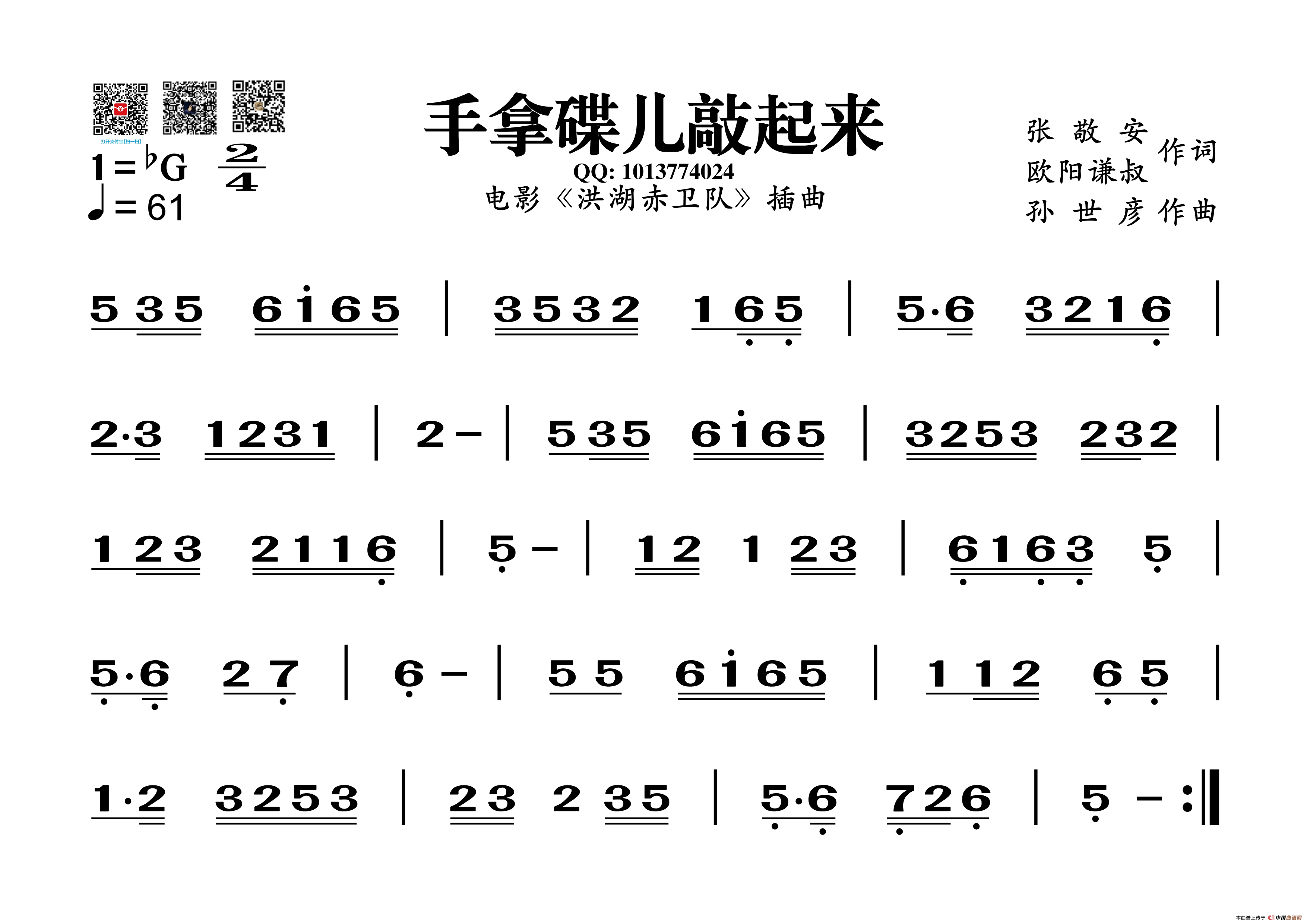 关于《手拿碟儿敲起来》曲谱的评论
