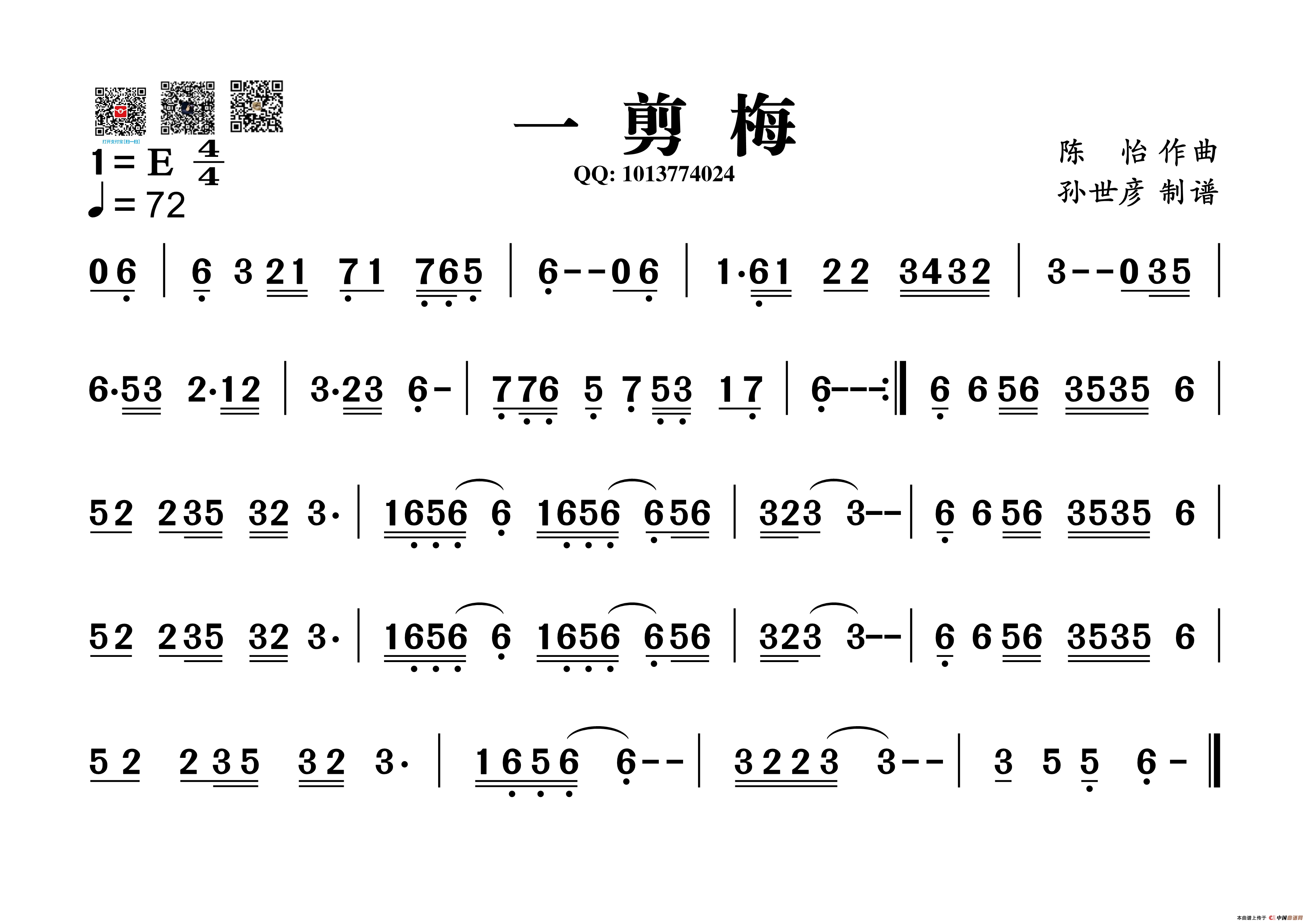 关于《一剪梅》曲谱的评论