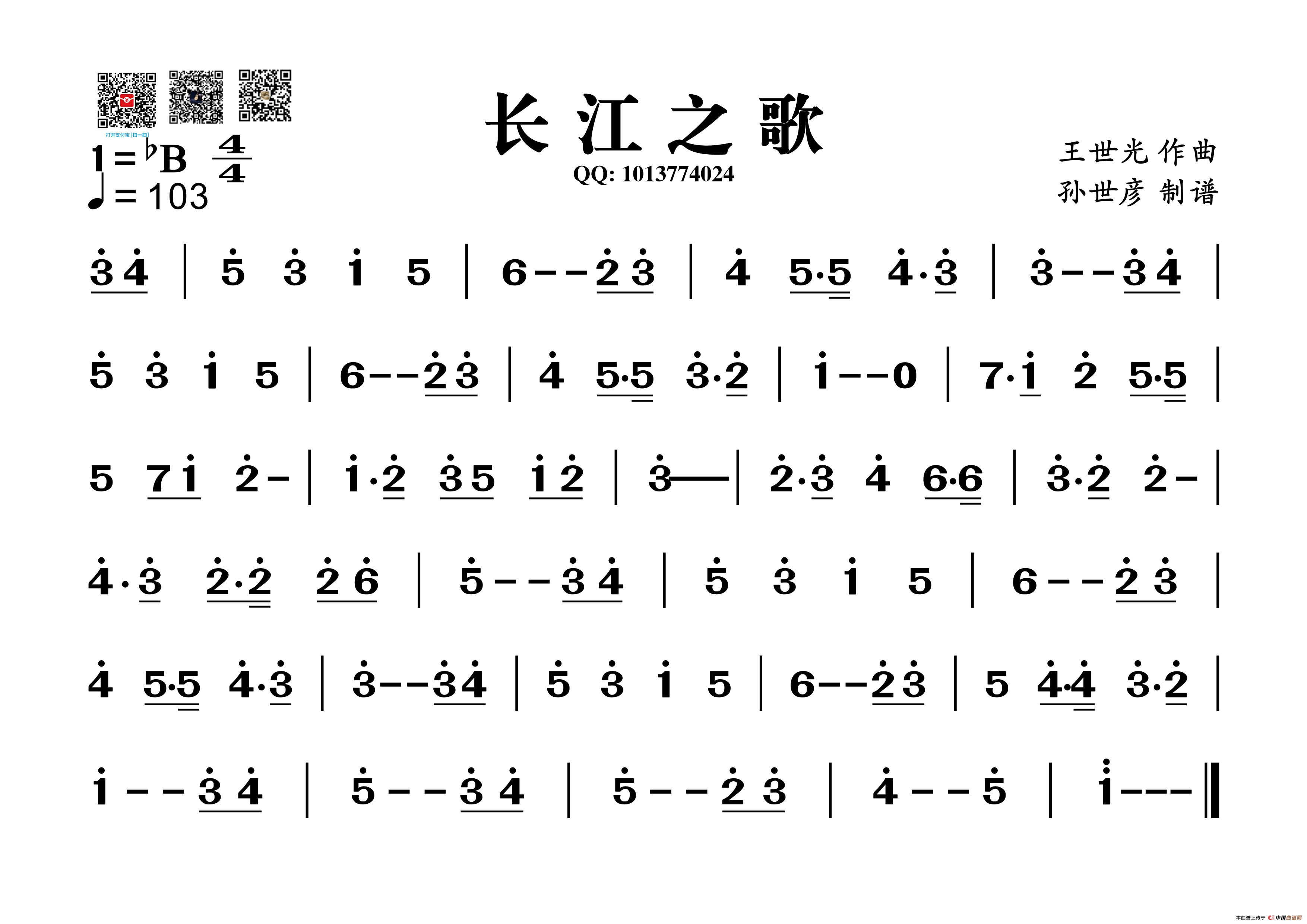 提示:在曲谱图片上单击右键,选择“图片另存为...”即可将曲谱保存到您的电脑中,打印时候可将图片插入到WORD中,调整合适大小打印即可。