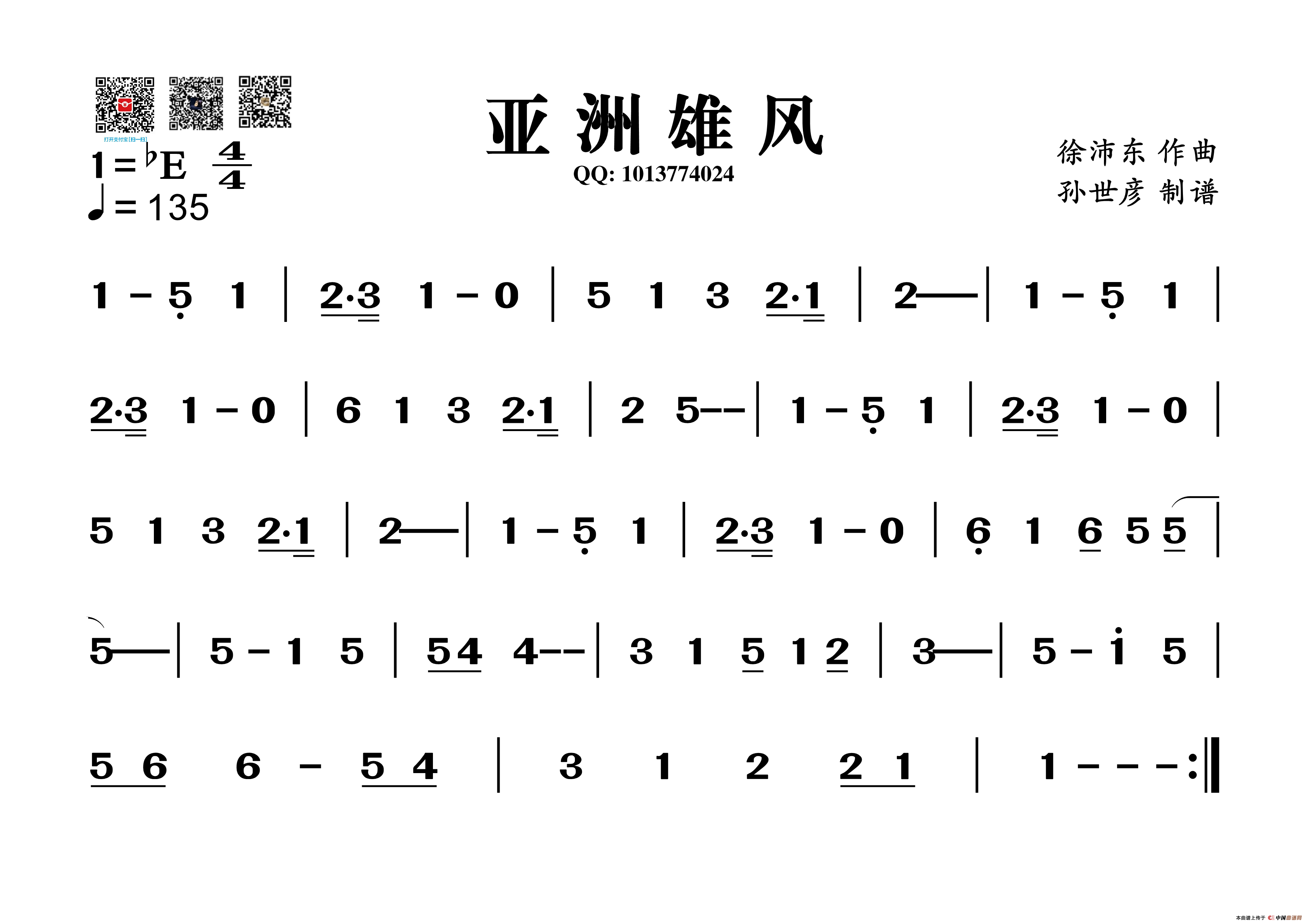 关于《亚洲雄风》曲谱的评论