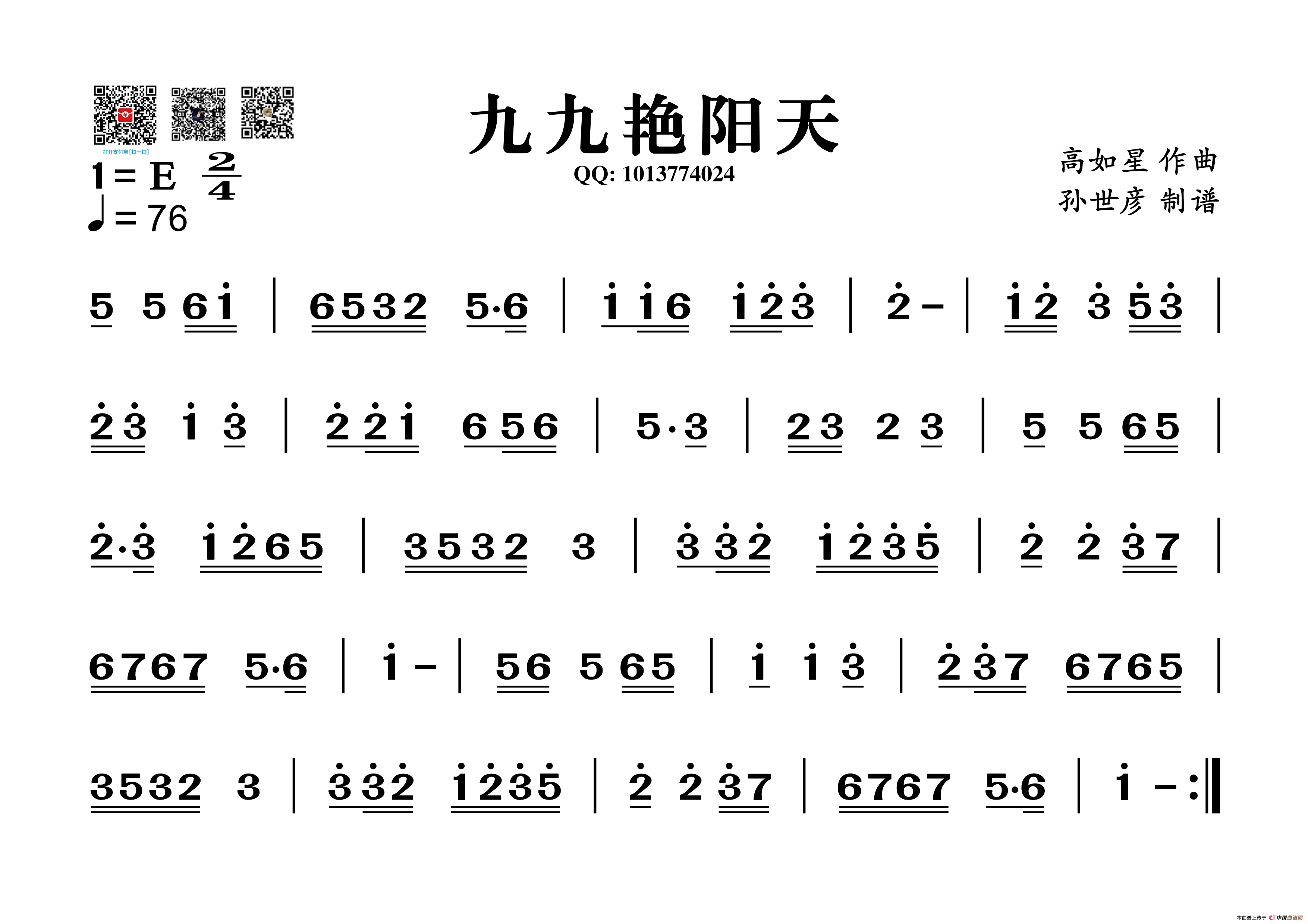 提示:在曲谱图片上单击右键,选择“图片另存为...”即可将曲谱保存到您的电脑中,打印时候可将图片插入到WORD中,调整合适大小打印即可。