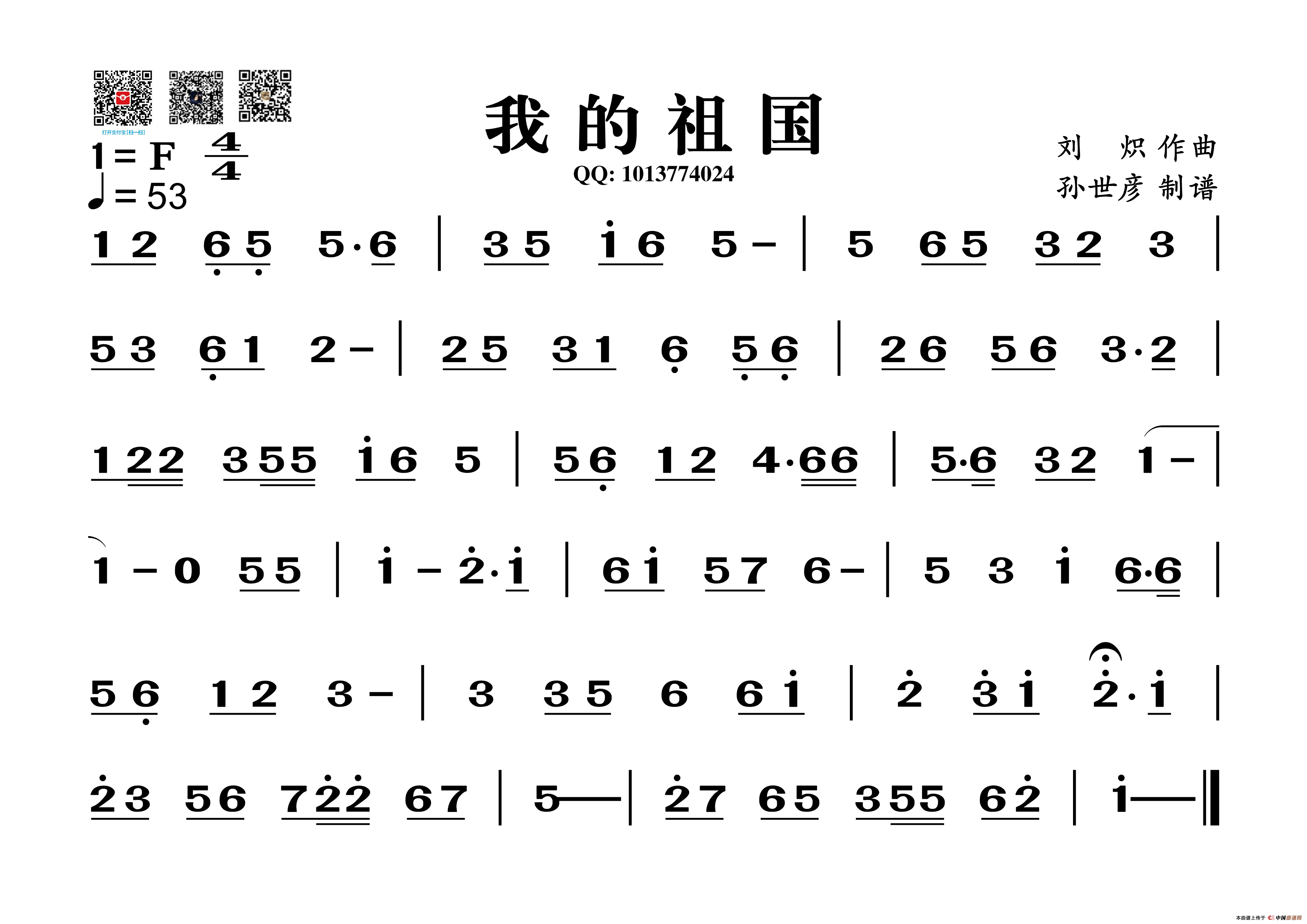 关于《我的祖国》曲谱的评论